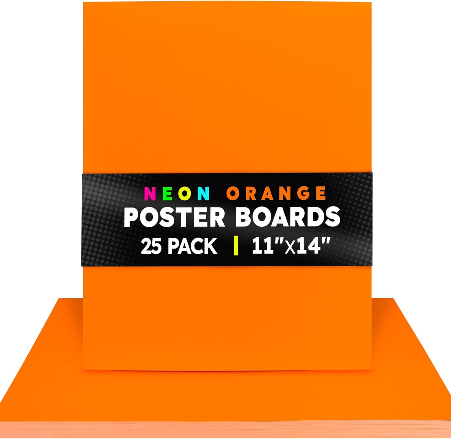Hygloss Medium Poster Board 11x14 - 25 Neon Orange Single Color Poster Boards Bulk Pack - 10 Pt. Thickness Colored Poster Board Paper for Projects, Signs, Displays - Posterboard Multipack 11" x 14"