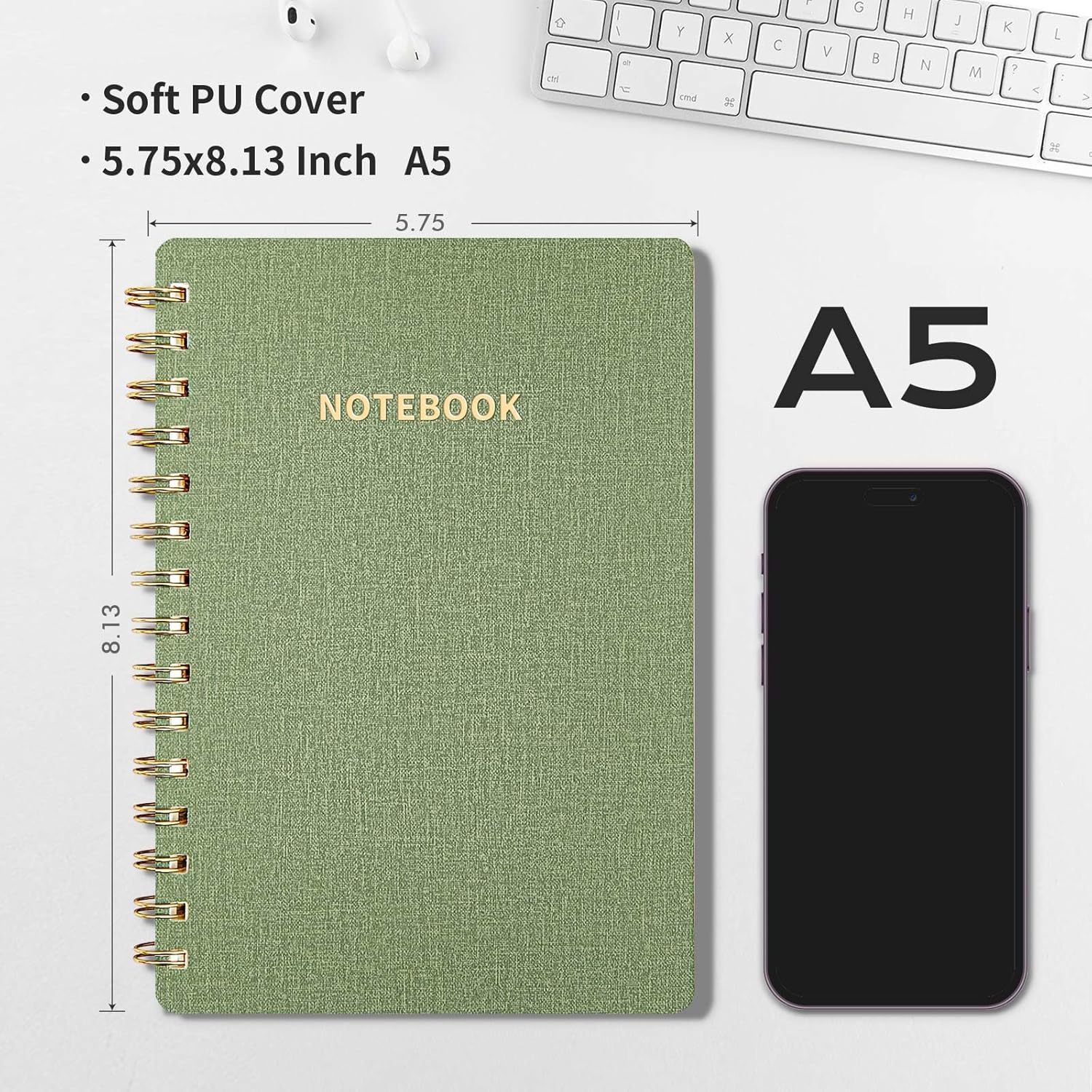 Lined Spiral Notebook College Ruled A5 Journal Book for Note Taking, 160 Pages Writing Journal for Office and Home School Supplies 5.75x8.125 inch (1ArmyGreen)
