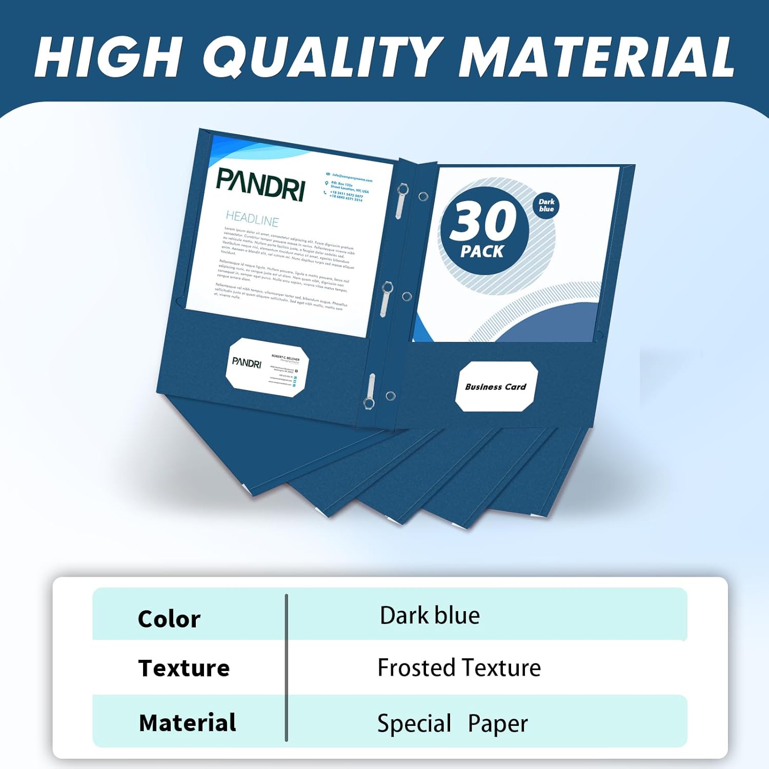 Two Pocket Folders, PANDRI 30 Pack Two Pocket Folders with Prongs, 3 Prong Folders Designed for Office and Classroom, Letter Size Darkblue