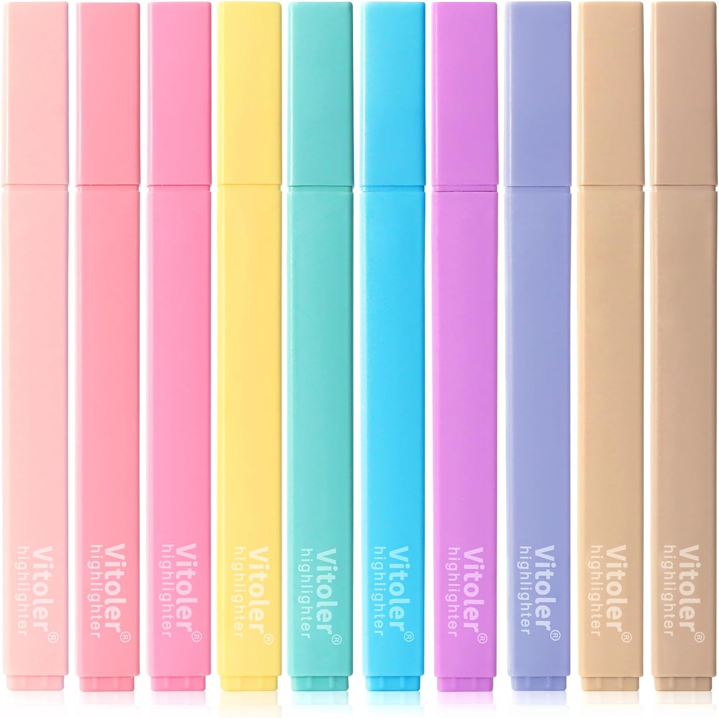 Vitoler 10 Pack Aesthetic Highlighters Soft Chisel Tip Bible Pastel Highlighters Cute Rainbow Color No Bleed Bible Highlighter,Great for Painting,Noting,Marking