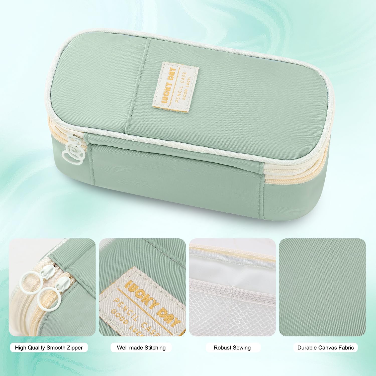 Pencil Case Aesthetic Pencil Bag with Zipper Pencil Pouch Big for Girls Kids Teens Adults Stationery Pencil Case Organizer for School Green