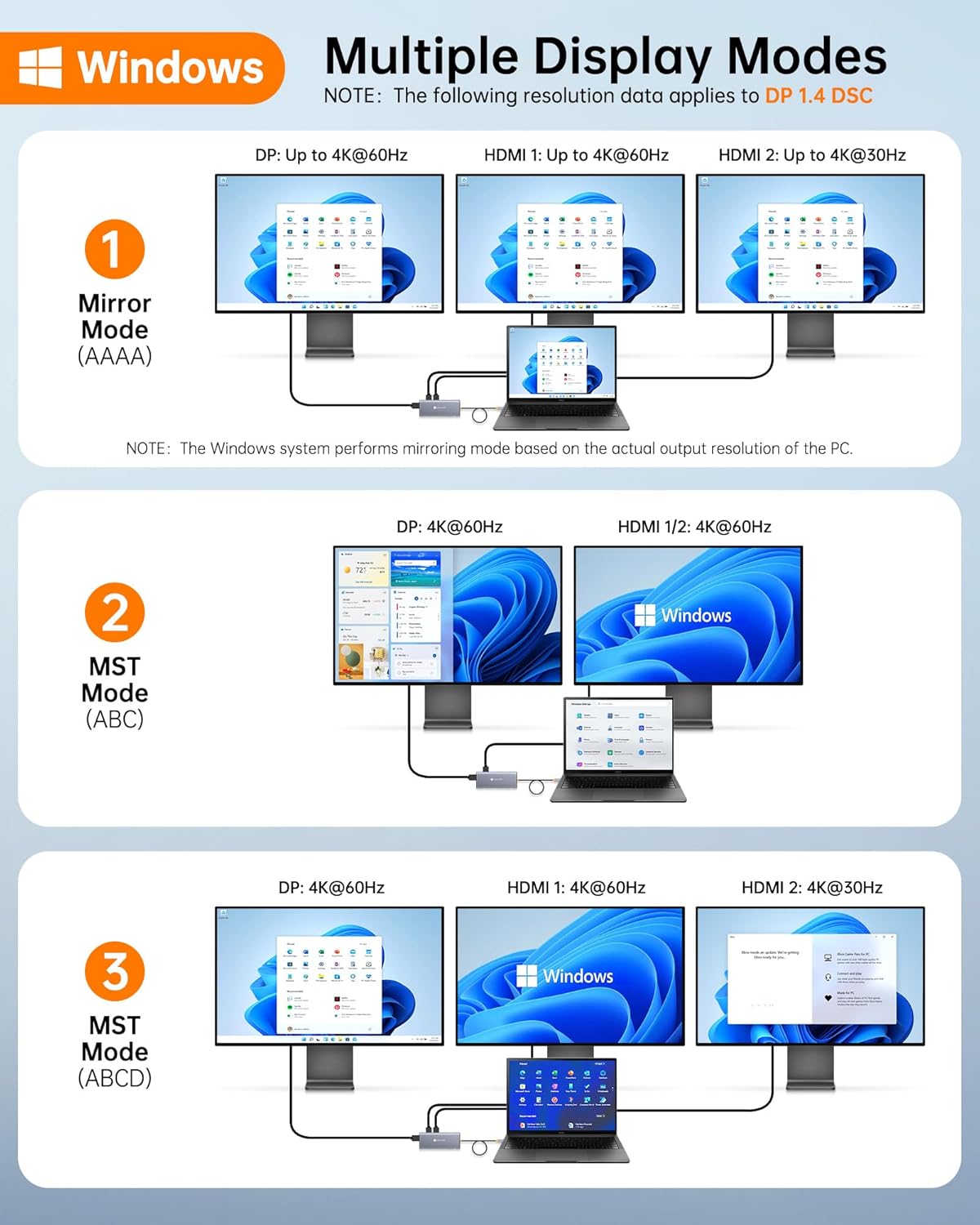 - đăTriple Display Made EasyăPerform multitasking work with MST(A-BCD) support. In Windows system, this USB-Hub allows you to display different content on triple 4K@30Hz monitors and easily manage complex projects with spreadsheets, documents and presentations across screens. đșNote: macOS only supports mirroring or single extension (A-AAA or A-BBB), not MST multi-monitor support.