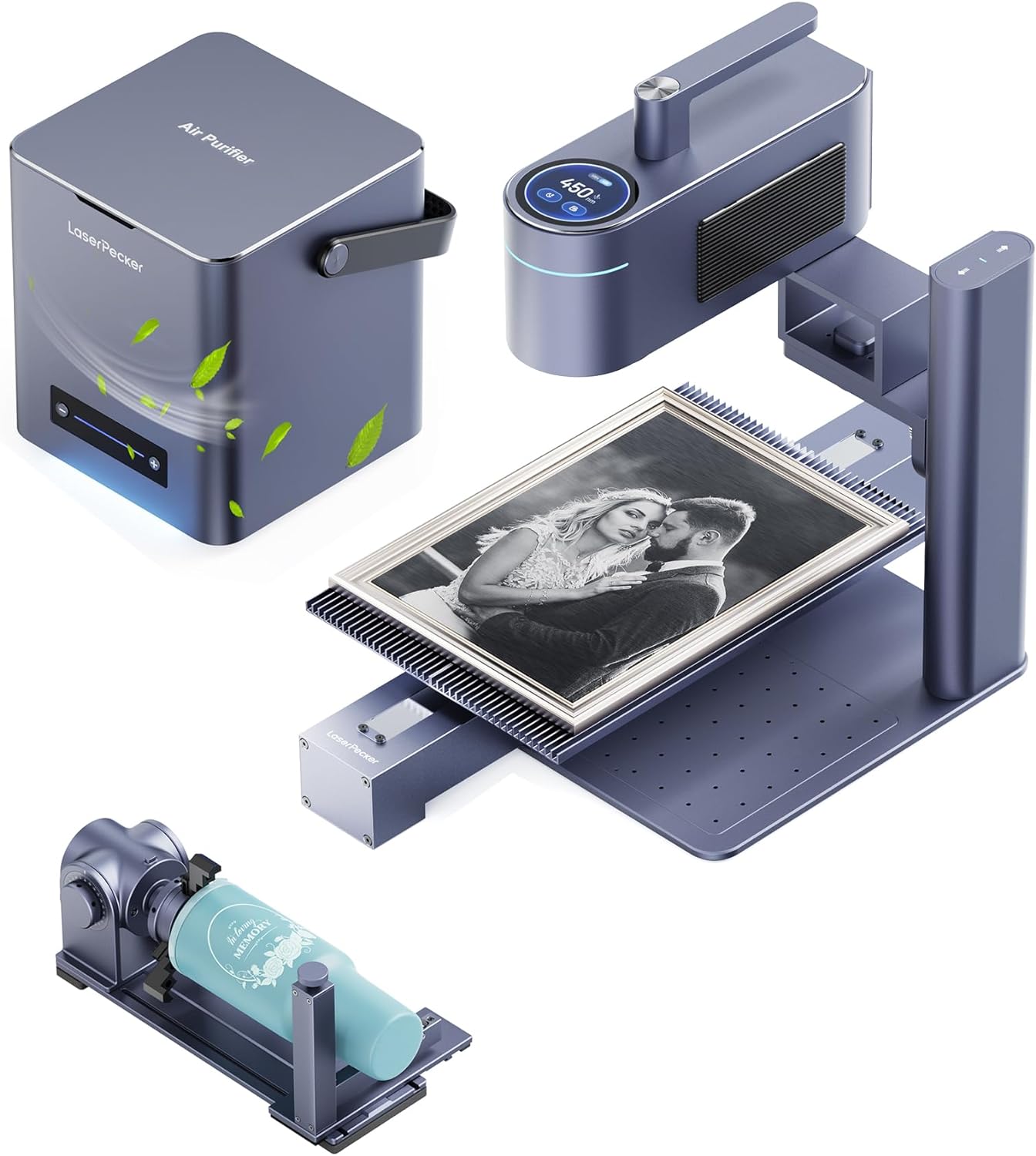 LaserPecker LP4 (Ultimate) with Desktop Air Purifier, Dual-Laser Engraver Cutter 160x300mm Workspace, Auto-Cleaning Smoke Fumes Engrave Tumblers Metal Wood Plastic Glass with Slide & Rotary Extensions