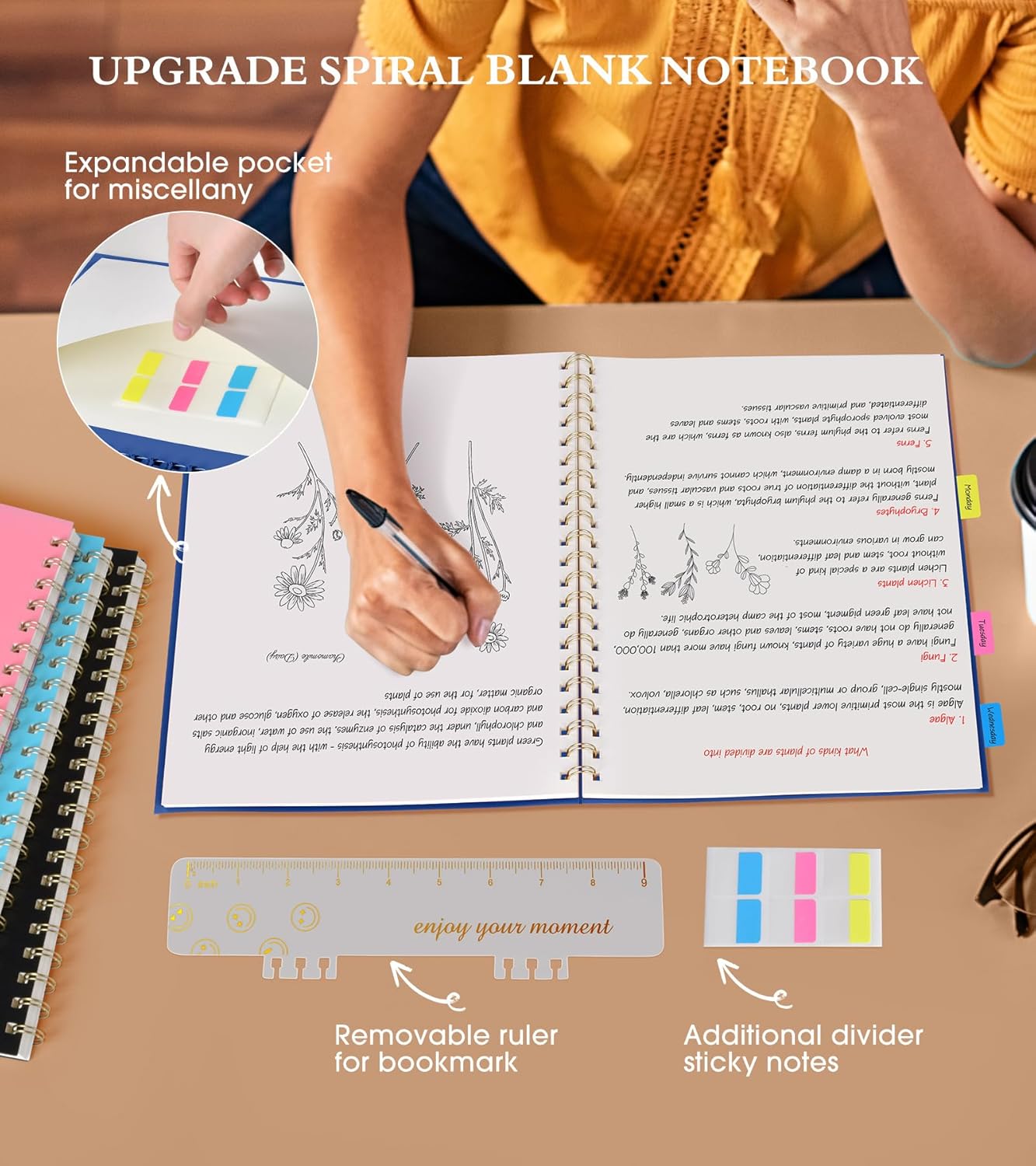 - 【Strong Spiral Metal Twin-Wire】 Our spiral sketchbook notebook has a sturdy gold-color double wire spiral with easy-to-turn pages and keeps pages attached reliably, while still staying flat when opened, which reading more convenient and taking notes more efficient. Spiral bound notebook easy to tear-off and fold over, as well as flip the cover back, giving you a better sketch book experience. Golden spiral bound adds aesthetic matching, it’s the perfect big notebook for journaling, drawing.