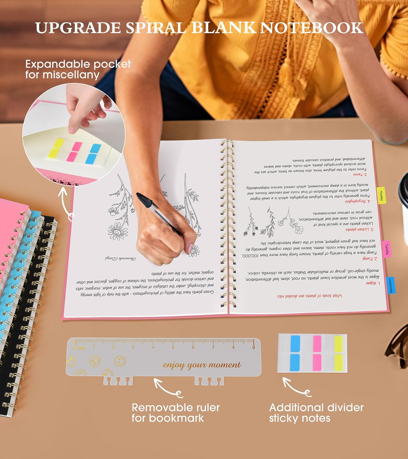 - 【Strong Spiral Metal Twin-Wire】 Our spiral sketchbook notebook has a sturdy gold-color double wire spiral with easy-to-turn pages and keeps pages attached reliably, while still staying flat when opened, which reading more convenient and taking notes more efficient. Spiral bound notebook easy to tear-off and fold over, as well as flip the cover back, giving you a better sketch book experience. Golden spiral bound adds aesthetic matching, it’s the perfect big notebook for journaling, drawing.