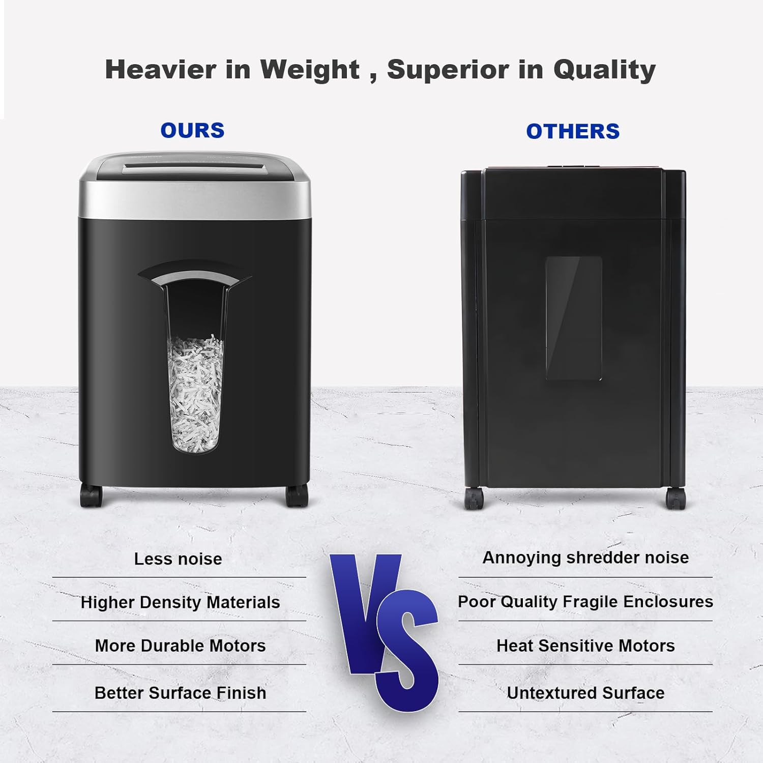 - 【Heavy-Duty 15-Sheet Capacity with P4 Security】Effortlessly destroys 15 sheets (80g Letter/A4) per pass into confidential 4x36mm particles (P4 security certified), eliminating sensitive data while chewing through staples and credit cards like butter.
