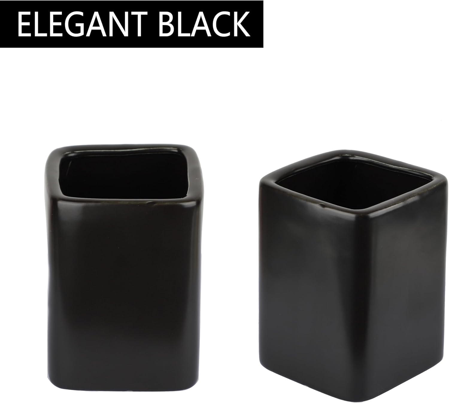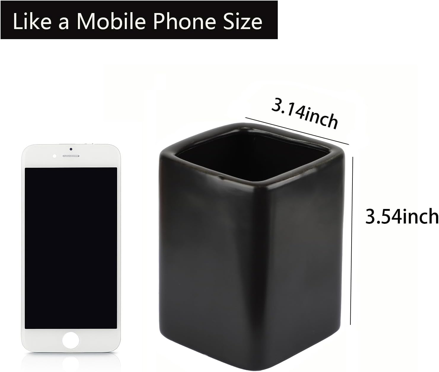 Square Ceramics Desk Pencil Holder for Men and Woman, Suitable for Offices and Homes(Black)