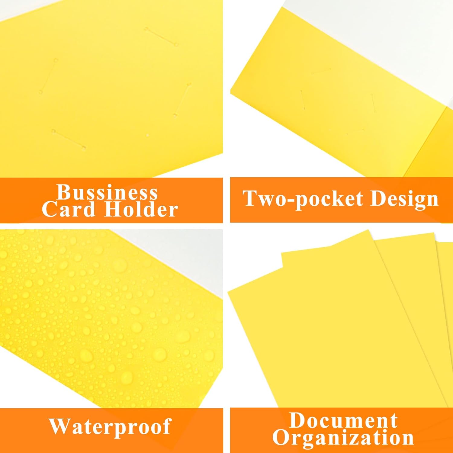 - KEY FEATURES:Two pocket folders with 5" pockets,Each pocket can hold up to 50 sheets,But can even handle more.Four-corner business card holder eliminates popout