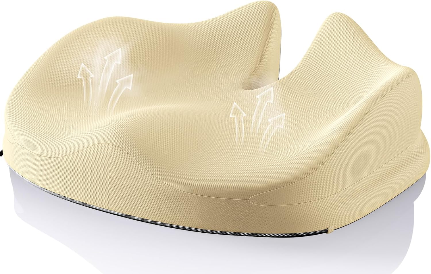 Benazcap Large Seat Cushion for Office Chair Memory Foam Coccyx Pain Relief Cushion Pillow for Back Support Non-Slip Seat Pad for Office Desk, Car Seat, Wheelchair, Sciatica-Beige