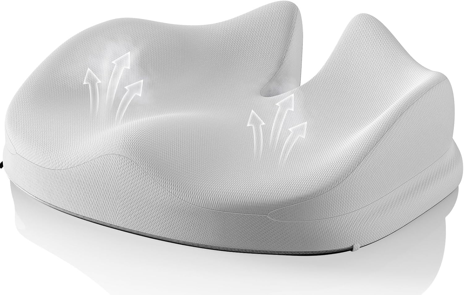 - đ§˝ăErgonomicăThe Ergonomic Seat Cushion is scientifically contoured to cradle your thighs & hip and help you sit upright up on any chair.