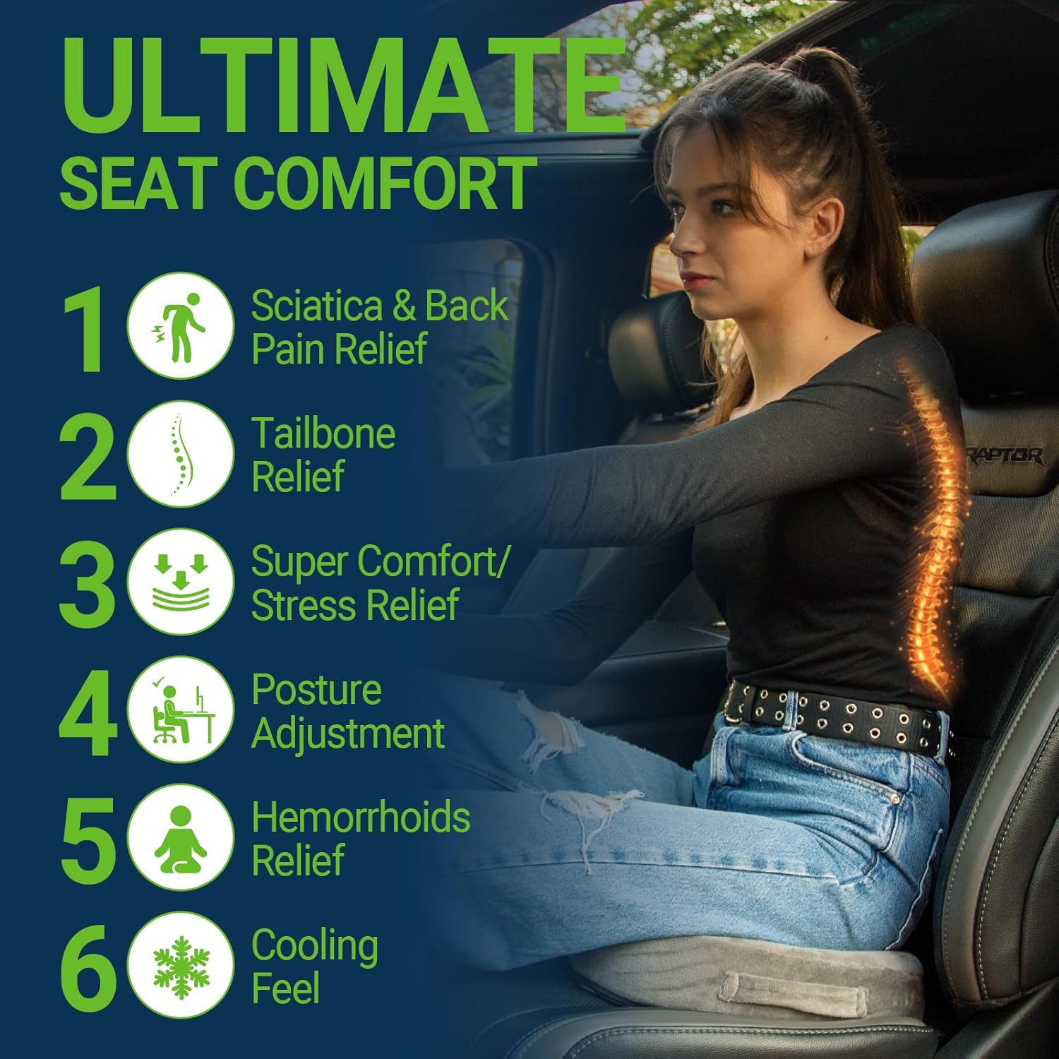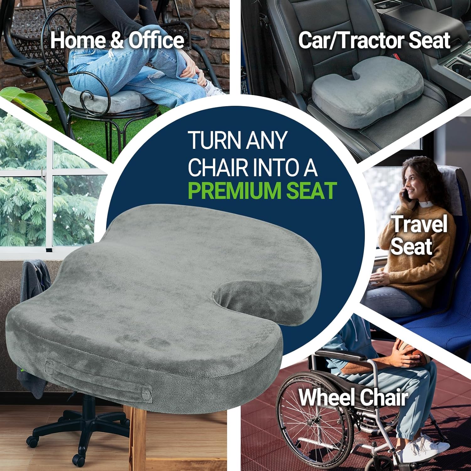 - Pressure Relief: Ergonomically designed seat cushion provides maximum support and comfort while reducing pressure on the coccyx/tailbone and promoting healthy posture. Whether you're a frequent traveler, office worker, or someone in need of extra support, it helps reduce discomfort caused by prolonged sitting