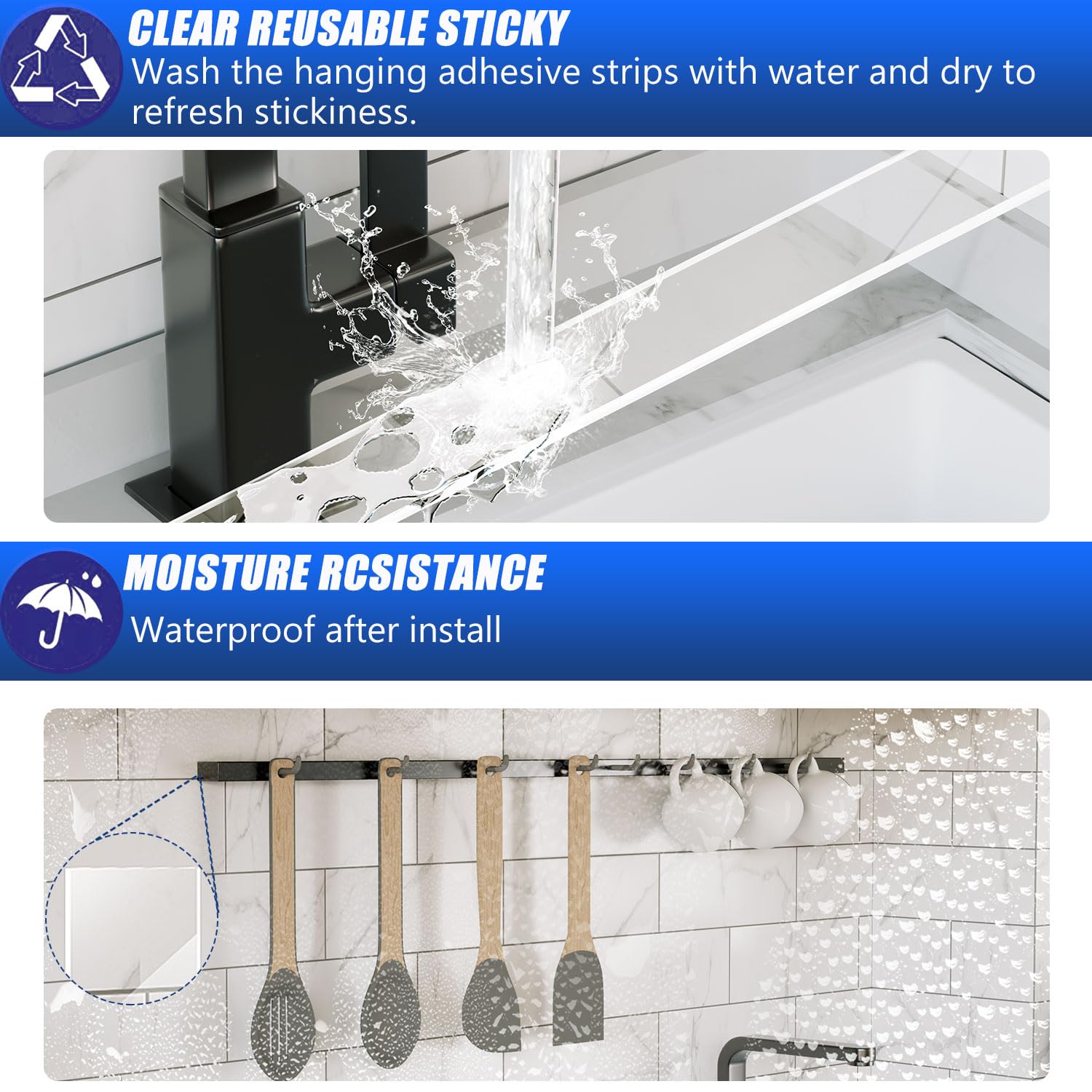- ăRemovable&No ResidueăThe removable adhesive strips leaves no sticky residue, Our thick adhesive tape works well on almost any smooth surface, such as walls, wood, ceramic, tile, glass, mirror, metal, plastic, marble, etc.
