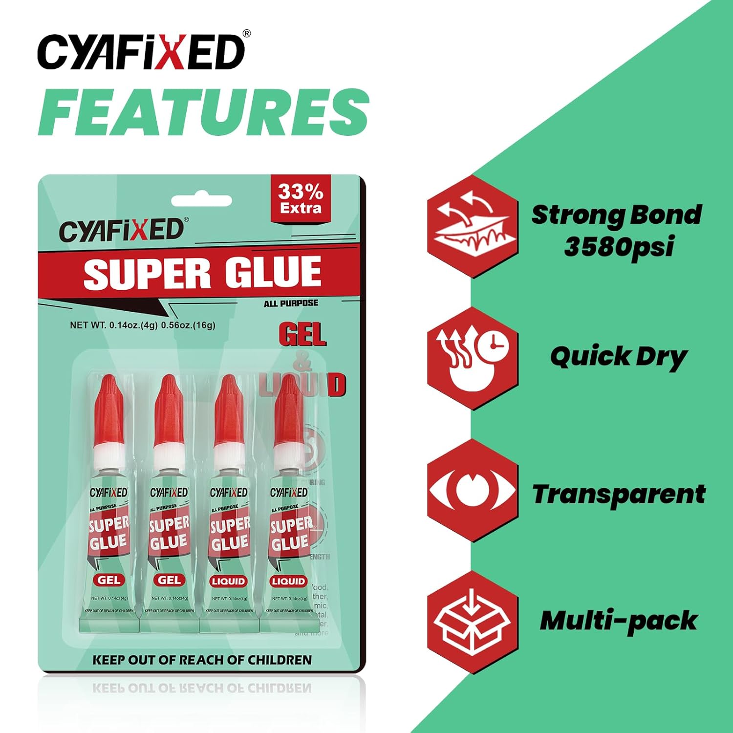 Super Glue Gel & Liquid, Clear Ca Glue Multipack All Purpose Repair Ceramic Plastic Glass Metal Pottery, Single Use Strong Cyanoacrylate Adhesive for Bonding Wood Shoes Crafts Model Aquarium Instant