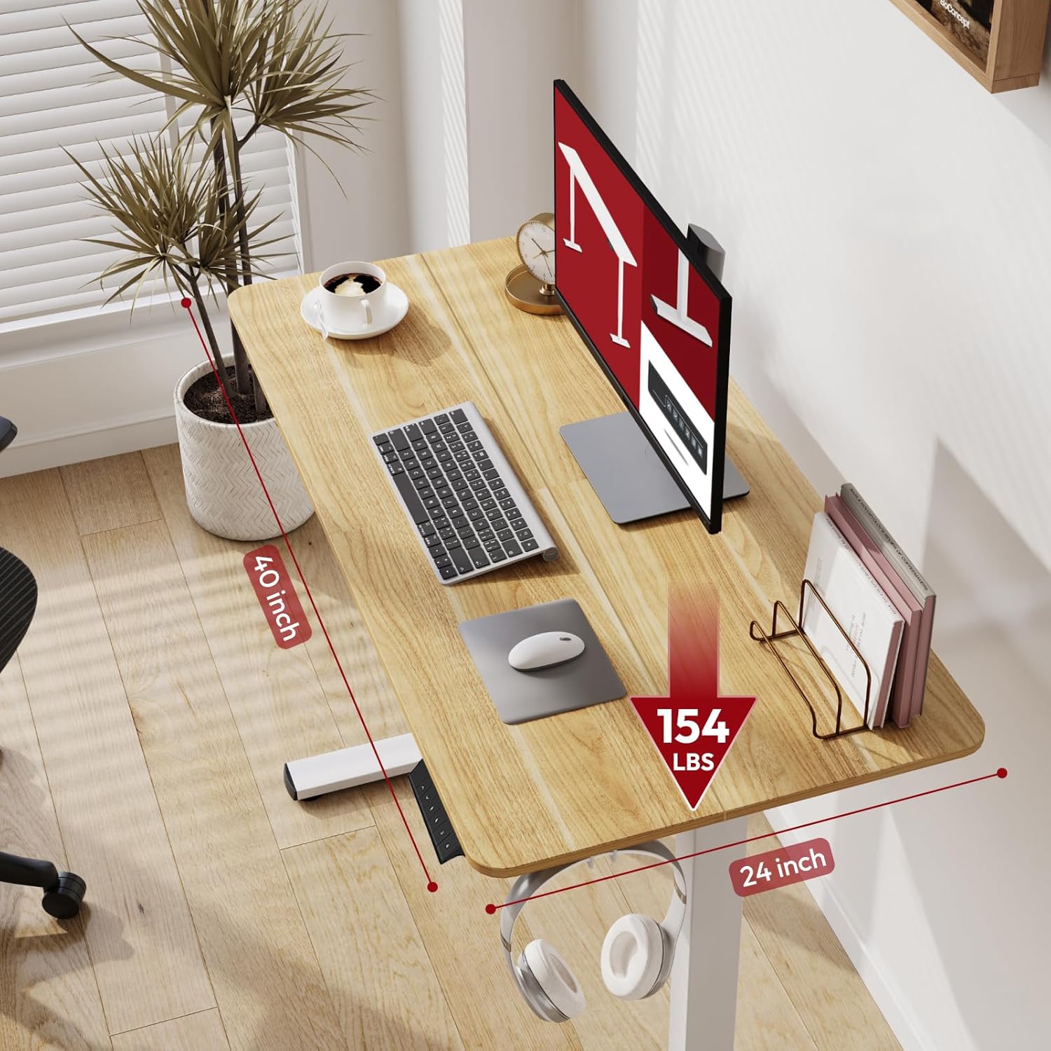 SANODESK Electric Standing Desk 40x24 Inch Height Adjustable Stand Up Desk Home Office Computer Workstation Sit Stand Home Office Desk with Splice Board (White Frame + Maple Top)