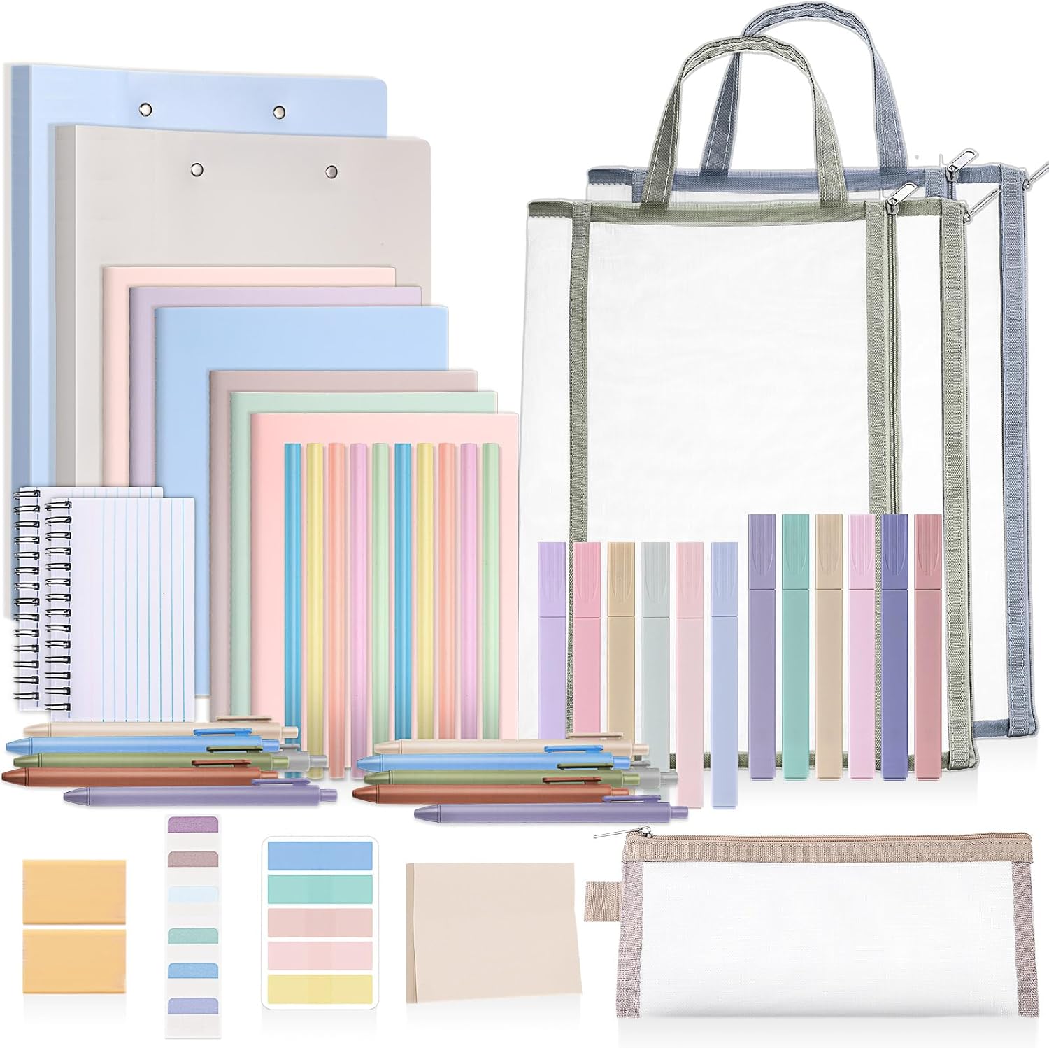 Colarr 54 Pieces Aesthetic School Supplies Including Pastel Highlighters Document Bags Pencils Notebooks Pencil Pouch Ink Pens Sticky Notes Erasers Back to School Gift Stationary Kit Supplies(Morandi)