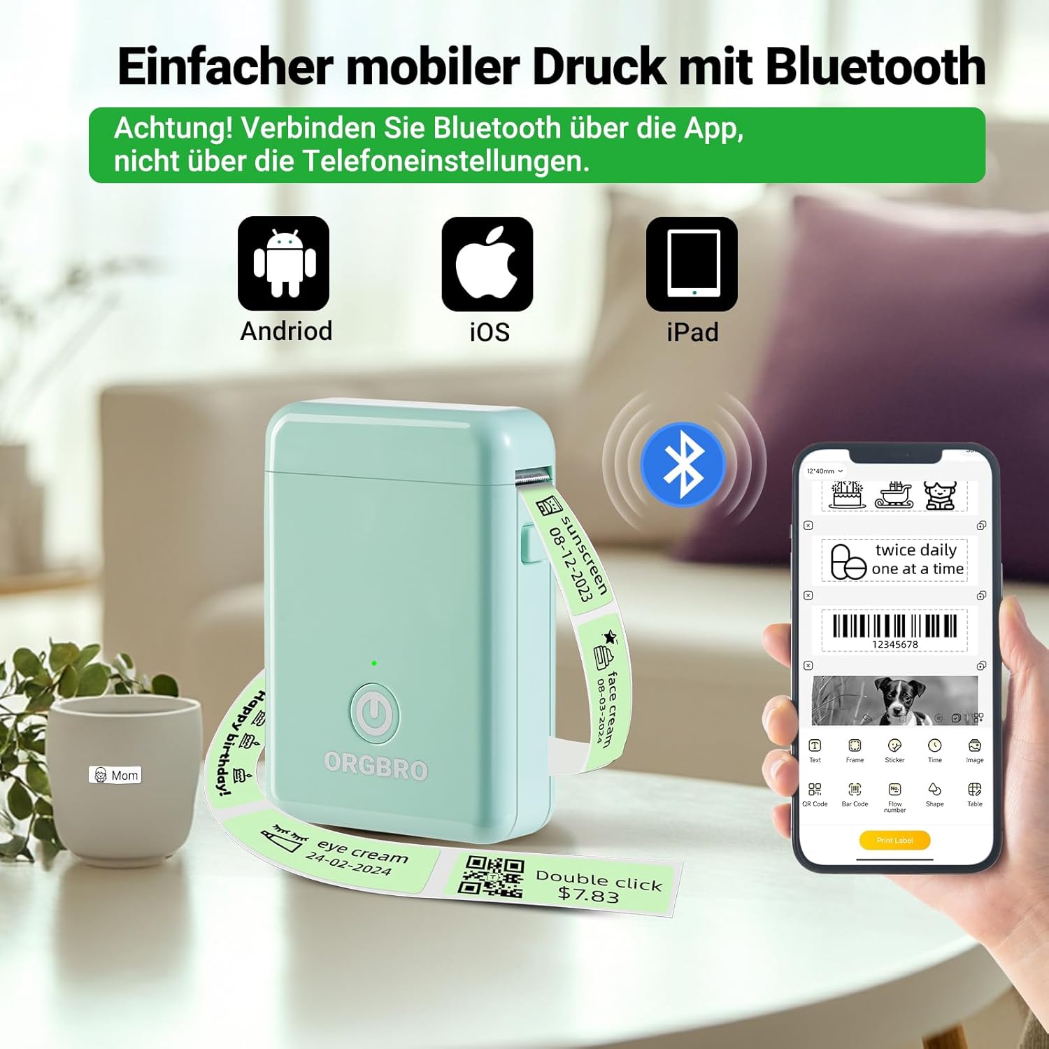 - Easy to Use: This label maker machine with tape APP connects and sets up the device in under a minute without any payment or registration required; Creates labels quickly and easily; Half the weight and size of traditional label maker, ORGBRO label printer are portable and can be operated with one hand