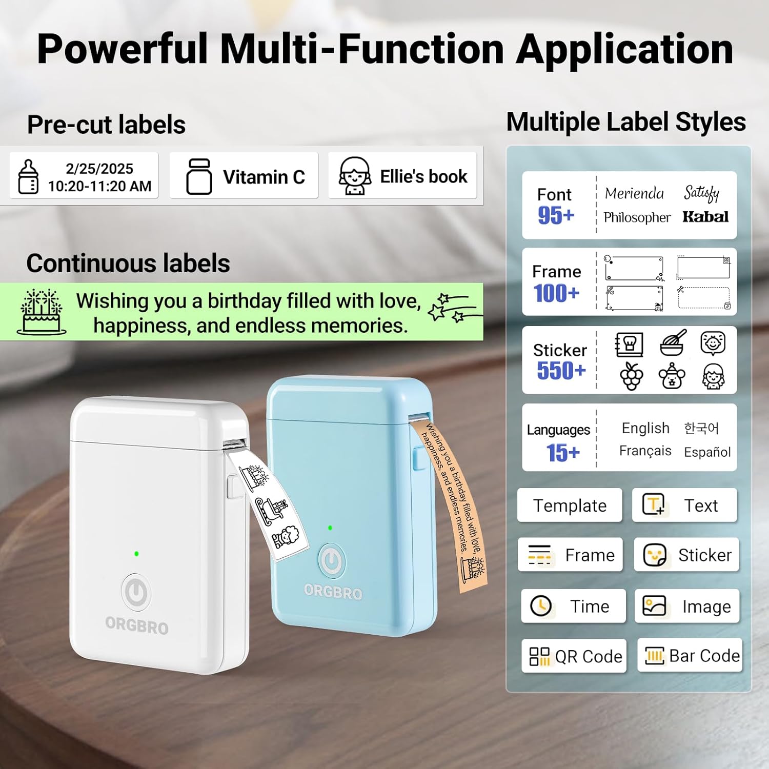 - Easy to Use: This label maker machine with tape APP connects and sets up the device in under a minute without any payment or registration required; Creates labels quickly and easily; Half the weight and size of traditional label maker, ORGBRO label printer are portable and can be operated with one hand