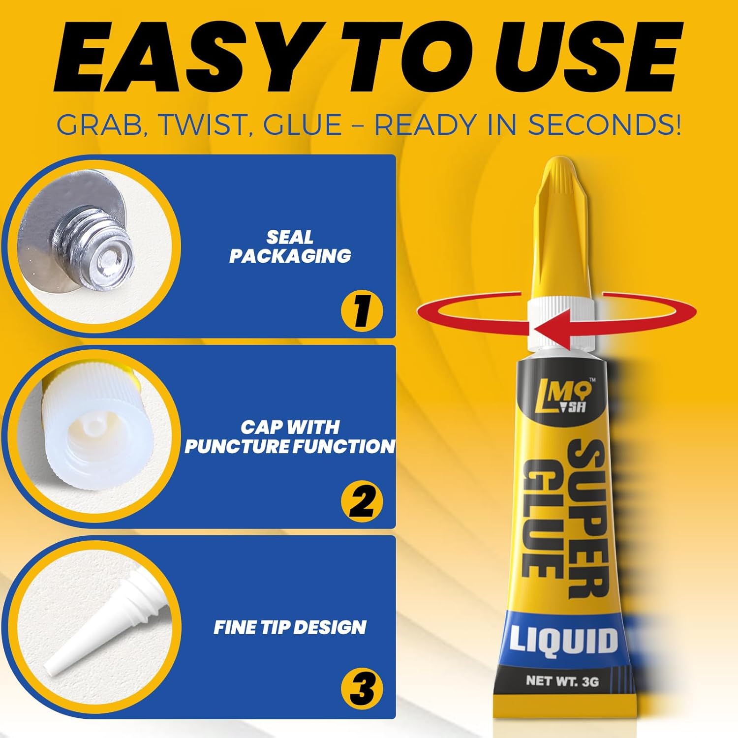 - 🛠️ Quick Fixes for Household Repairs: Designed for small household fixes, this super glue bonds effortlessly to ceramic, glass, wood, plastic, and more. Perfect for repairing broken items and restoring them to their original glory with ease.