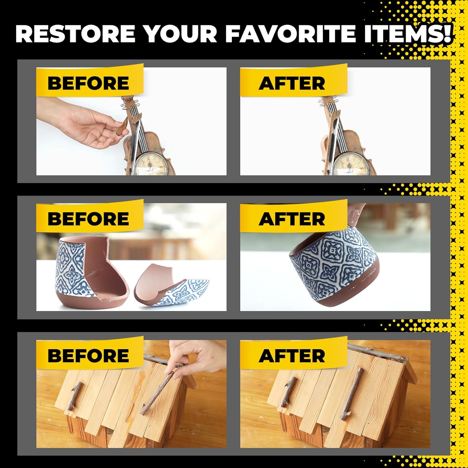 - 💪 Ultra-Strong and Durable Bond: Experience heavy-duty strength with our super glue gel, offering an impressive tensile strength of 3580 PSI. Designed for durability, it ensures a permanent adhesion that remains reliable through daily use and maintains integrity over time for all your repair needs.