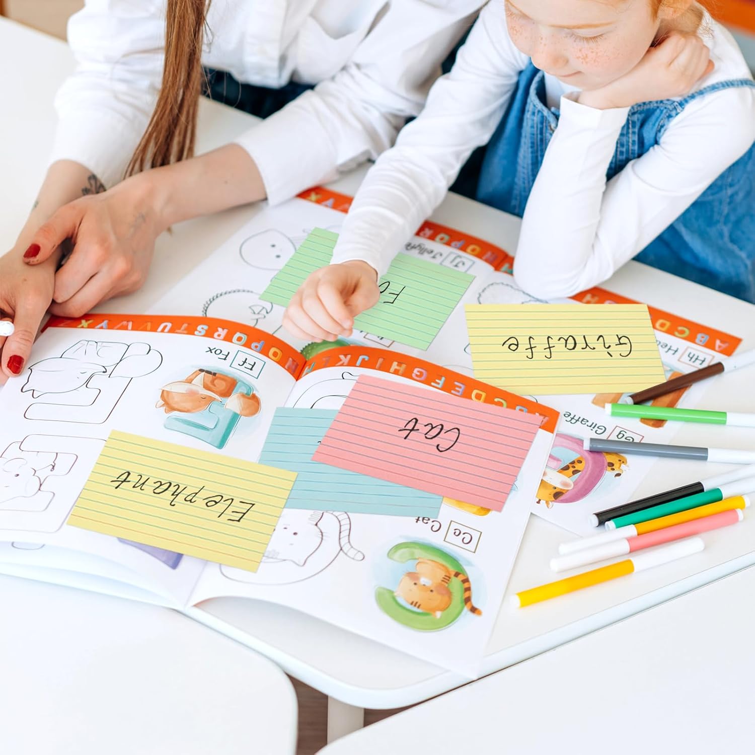 - Lined Note Cards: The clear horizontal printing and suitable spacing on these index cards colored allow for organized and easily legible writing ; The smooth paper surface ensures a seamless writing experience, allowing your pen to glide effortlessly