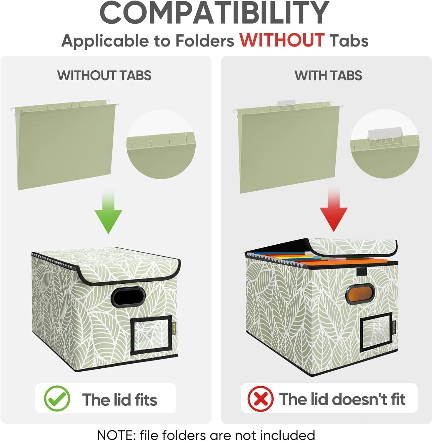 BALEINE File Organizer Box with Lid, Collapsible File Folder Organizer with Plastic Slide, Hanging File Folder Box for Office Document Storage (1 Pack, Antique Foliage)