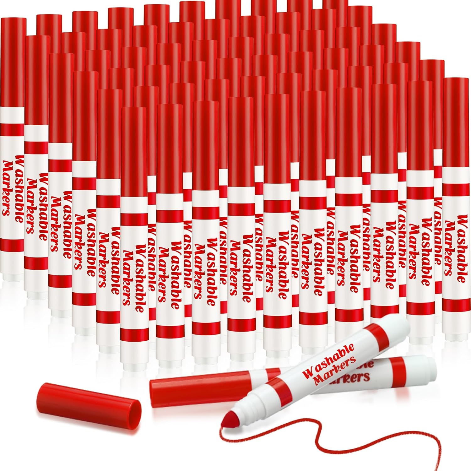 Janlaugh 60 Pcs Red Washable Markers Bulk Coloring Broad Line Markers for Kids Conical Tip Red Drawing Pens for Classroom Back to School Travel Art Baby Shower Gender Reveal Supplies, Ages 6+