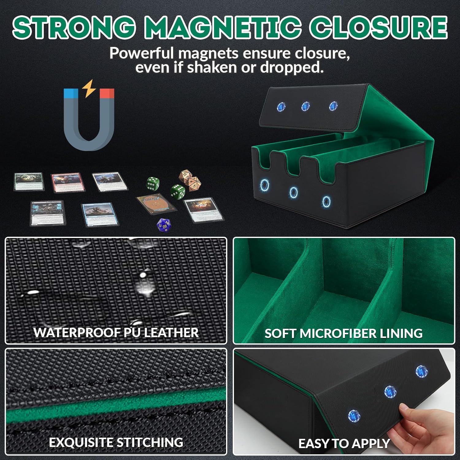 Card Storage Box for Trading Cards, 2100+ Card Deck Case with PU Leather and Magnetic Closure, TCG Storage Box, Suitable for MTG, YuGiOh, and Sports Cards, Includes 8 Card Dividers