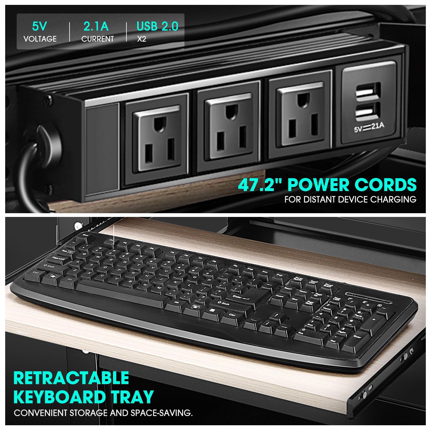 - Special Feature : Adjustable Height, Keyboard Tray, Power Strip, Swivel Casters