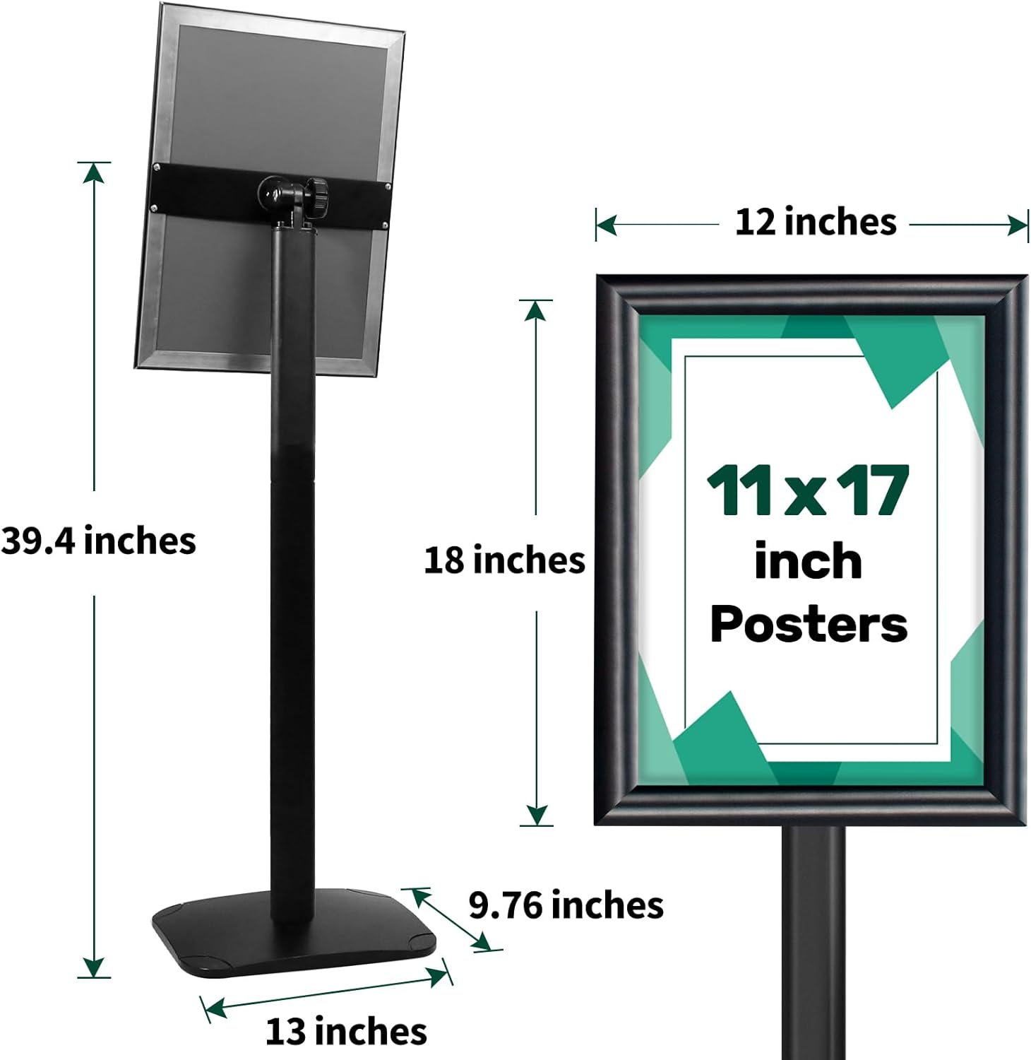 Heavy Duty Pedestal Sign Holder for Display, 11 x 17 inches Adjustable Floor Standing Sign Holder with Weighted Base , Vertical and Horizontal View Sign Stand for Indoor/Outdoor Advertising,Black