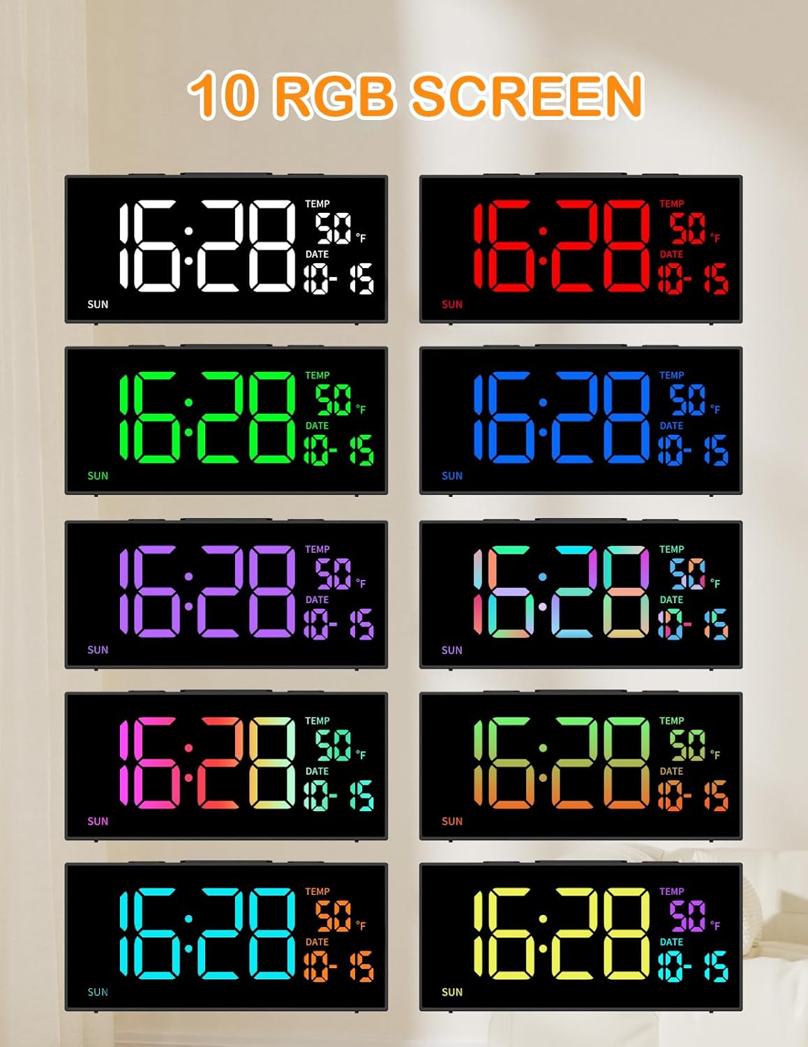 - 4-in-1 Display Plug-in Clock - This clock features a four-in-one display that shows temperature, date, day of the week, and time all in one glance. Its unique color scheme ensures that the display is not only clear and easy to read but also aesthetically pleasing. Perfectly suited for both the living room and bedroom, it adds a touch of elegance to any space.