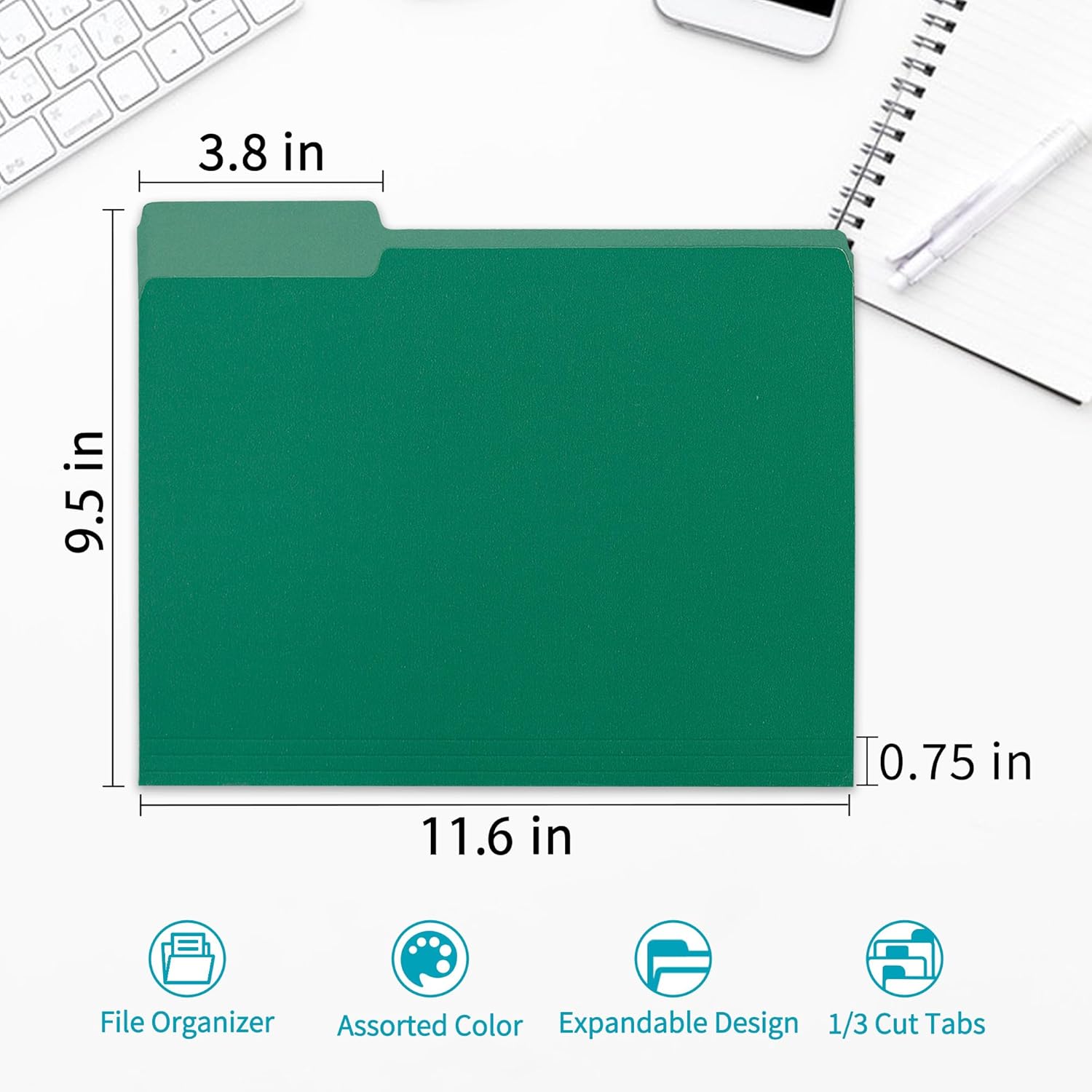 36 Packs Colored File Folders,Green File Folders,Two Tone Color File Folder 8.5 x 11 Inch,1/3 Cut Tabs Letter Size,Manila File Folders for Office,School and Home,Organization
