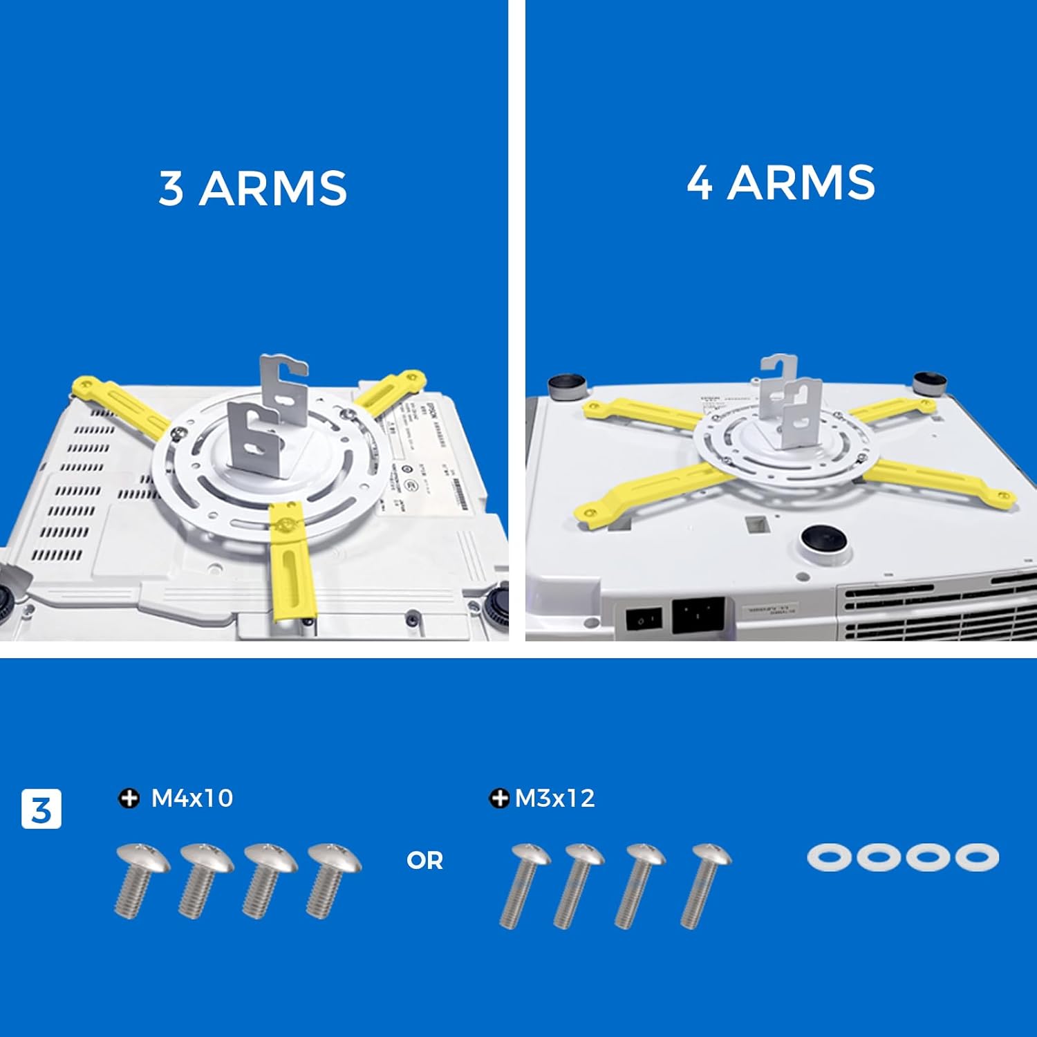 - Universal Compatibility: Engineered to fit a wide range of projectors, including mini projectors. The adjustable mounting arms extend from 3.7" to 13.4", ensuring a perfect fit for various models. Ideal for both home theaters and office setups, providing flexibility for future upgrades.