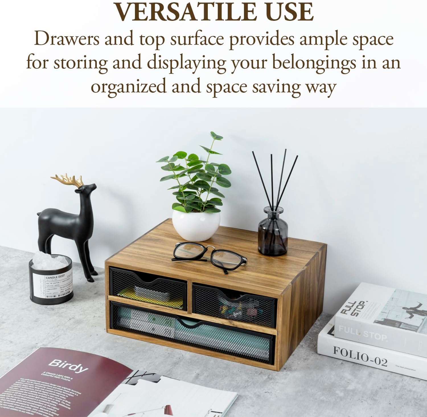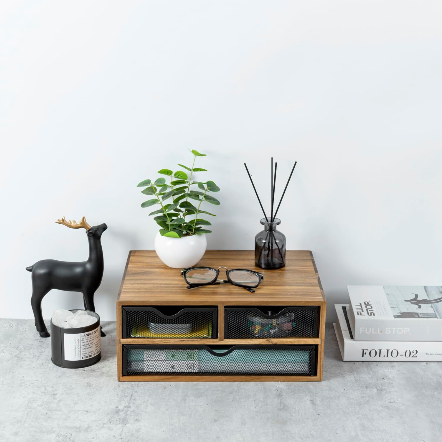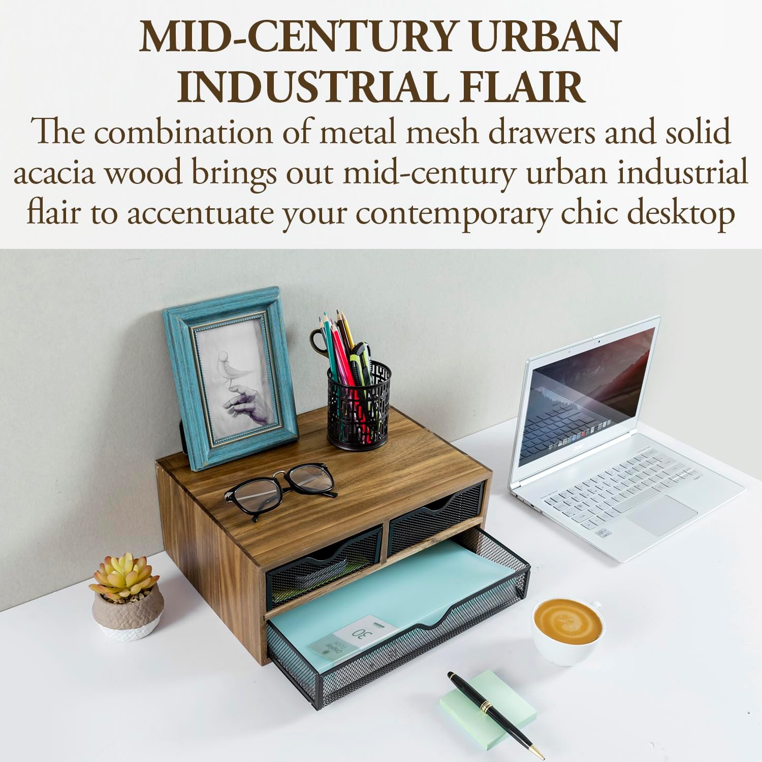 - Multipurpose premium solid acacia wood office supplies storage box with 3 drawers keeps any table, countertop, or desk workspace clutter-free **Accessories are NOT included**