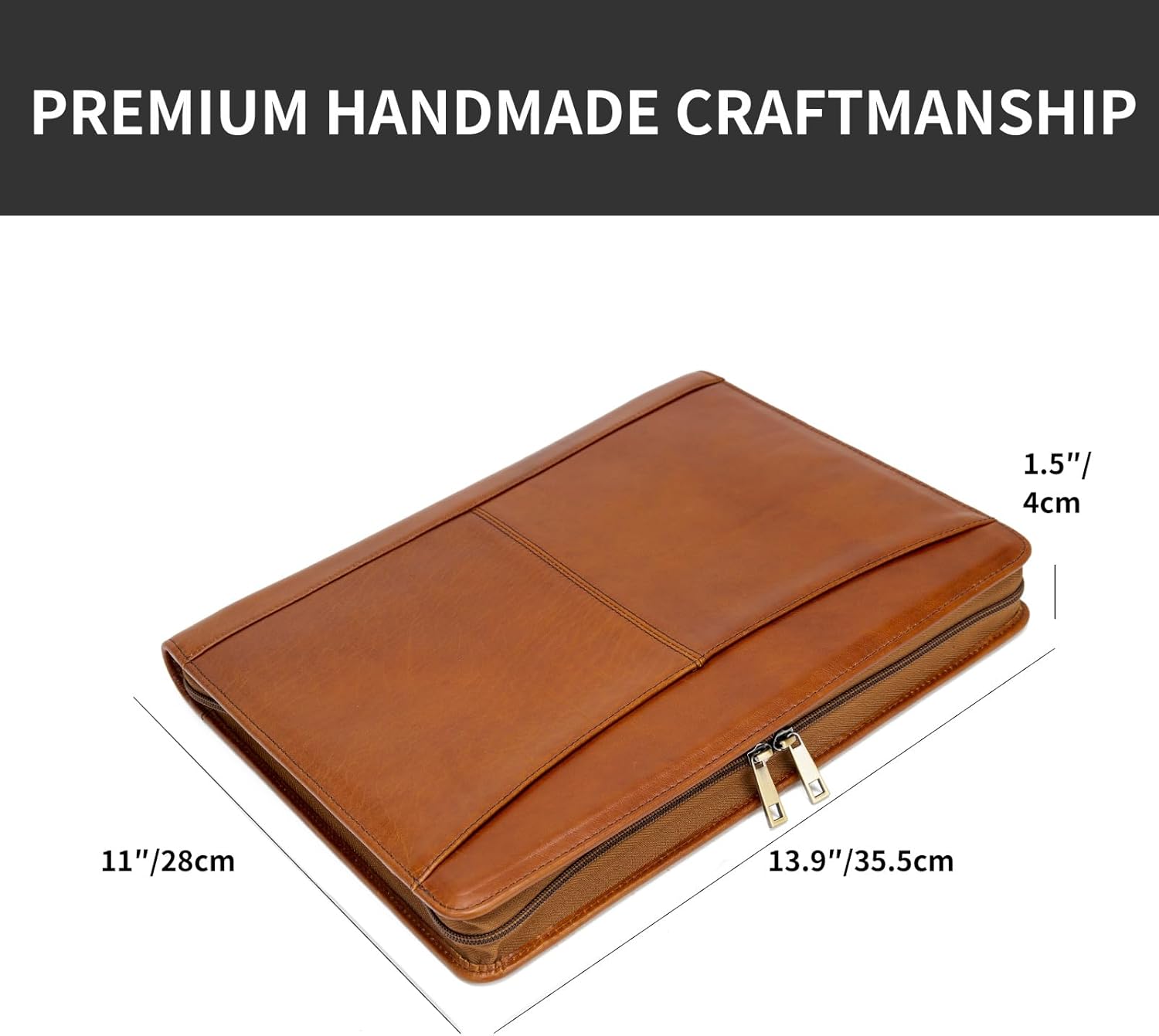 - Large Capacity for More Papers: The leather portfolio is thick with enough room and multiple pockets so you can carry more files and paper inside. Friendly to store paper and easy to close without bulges. The dual YKK zippers enclosure makes it smooth to zip. No more worry about damaging paper or stuck zipper.