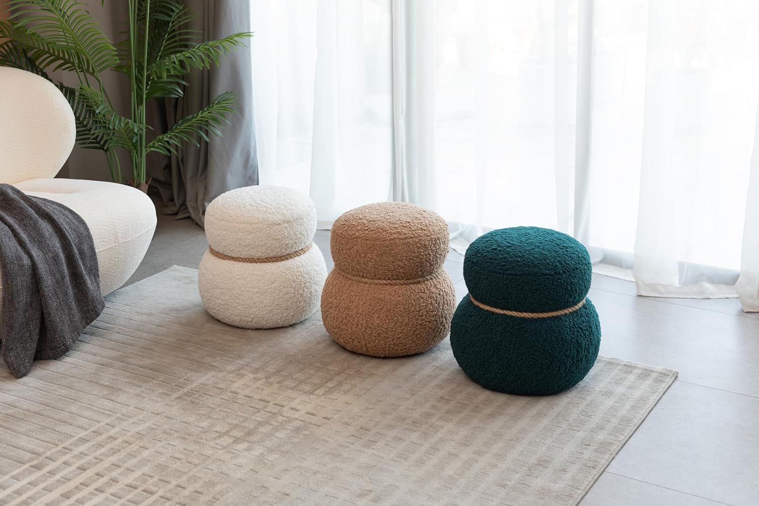 MEETAKING Small Round Foot Stool, Teddy Fabric Footrest Ottoman Stool with Non-Skid Legs, Modern Footstools Step for Couch, Desk, Office, Living Room (Light Brown)