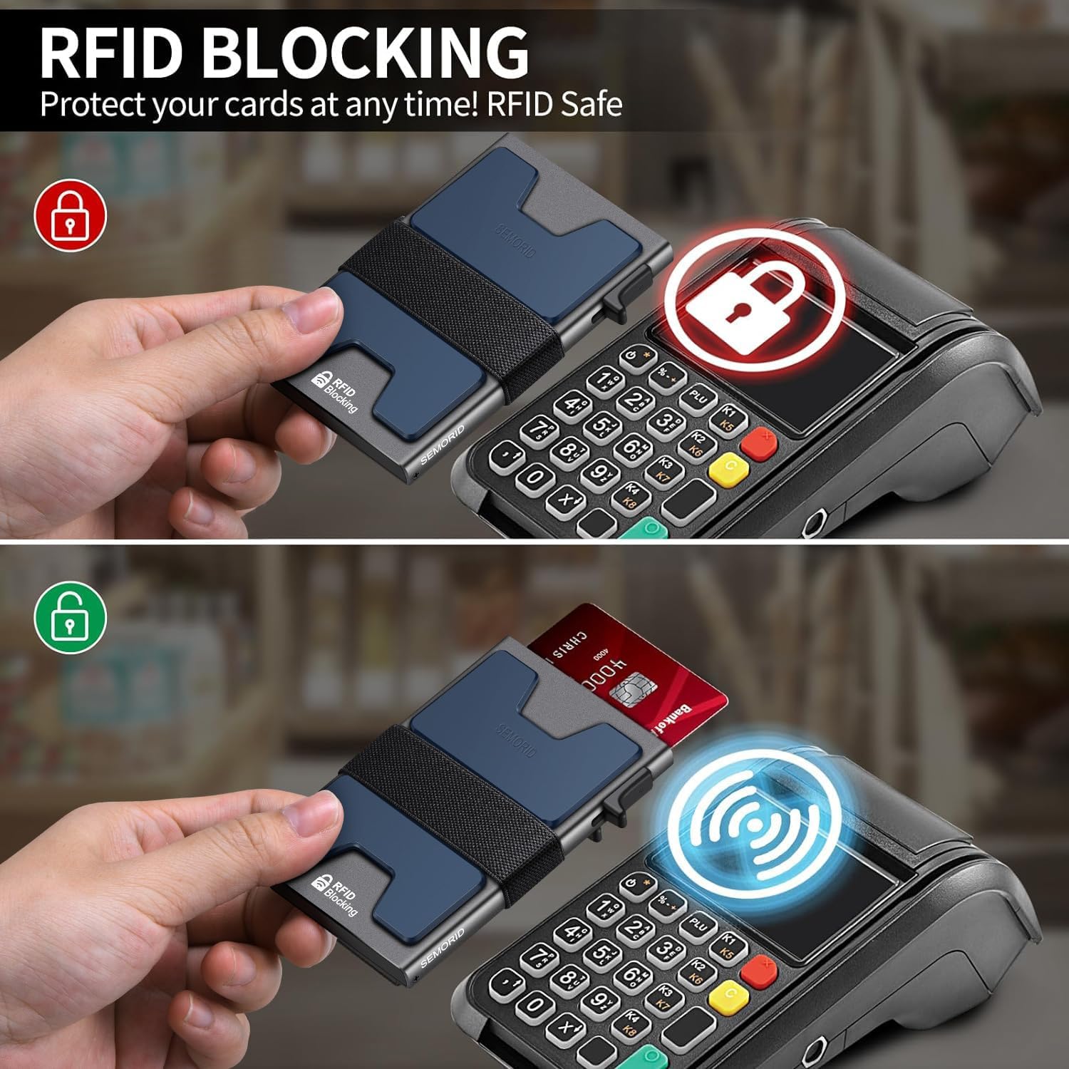 - 🔒 RFID & NFC BLOCKING: This smart wallet use advanced aluminium technology to protect your cards from unauthorized and contactless scanning. Stop thieves from cloning your bank cards and prevent data theft.