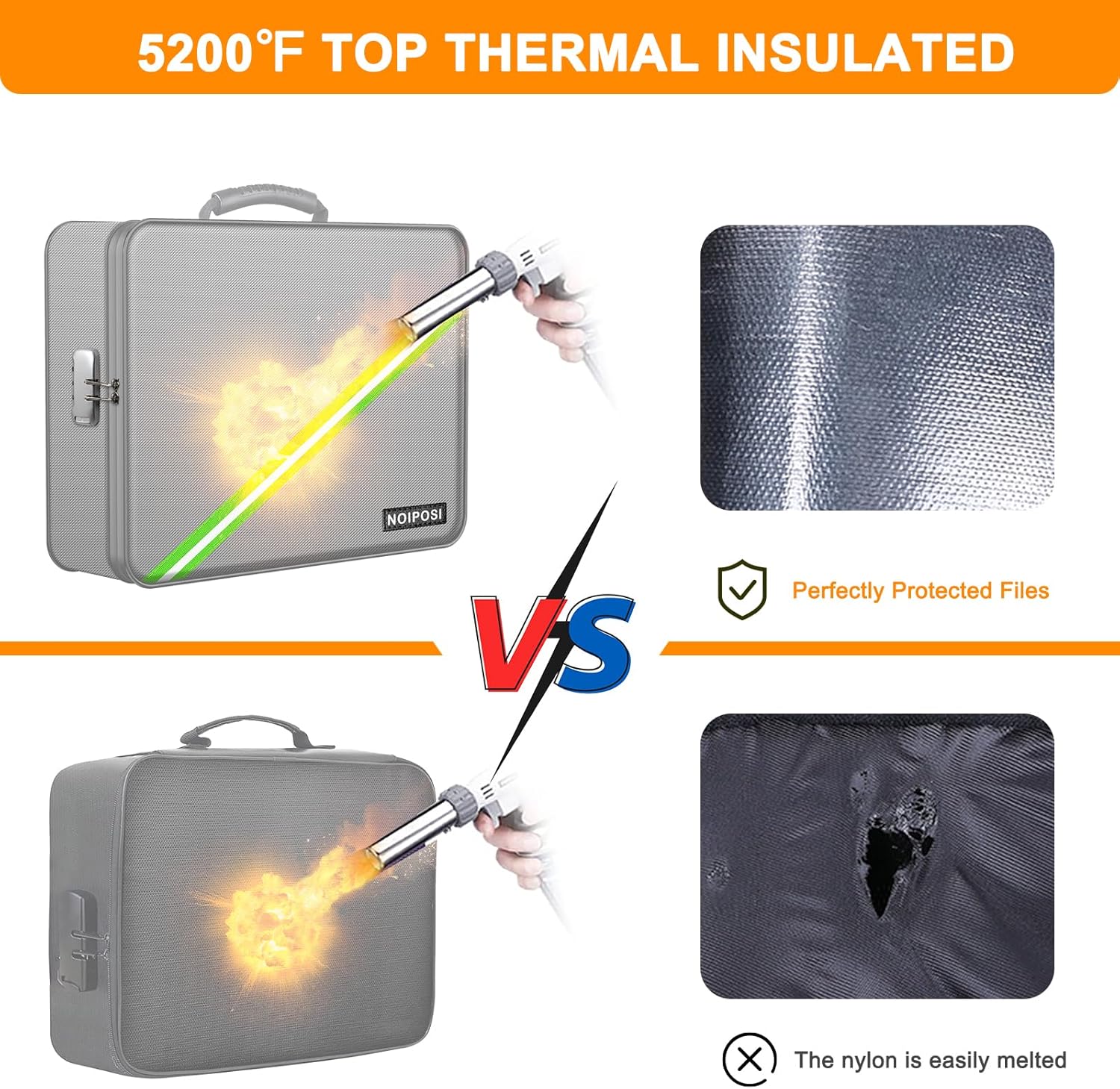- 5200℉ TOP FIRE PROTECTION::important document organizer is made of silicone fiberglass ,Insulated cotton and Aluminum Foil which withstands high temperature up to 5200℉ .Important document storage adopts a 8-layer function material structure of fire protection and heat insulated to help the heat blocking from your valuables . It will give enough time to save your valuables from fire .Fire box safe for documents is highly recommended by firefighters in the most demanding environments