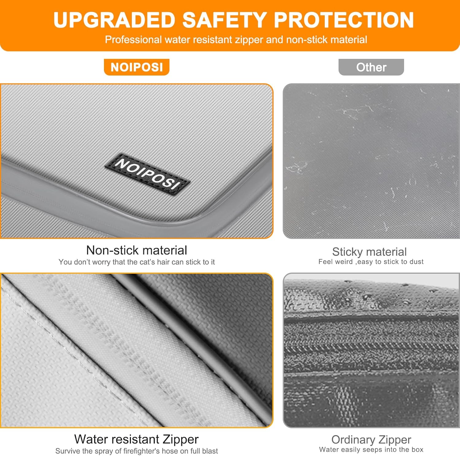 - New Non-stick Material and Waterproof Zipper: through the unremitting efforts of technicians, now they have developed a non-sticky anti-static material for lock box for documents .We don’t worry that the cat’s hair and dust or dirt particles would immediately stick to it.Meantime, the Sealed zippers of important document storage are totally waterproof which can survive the spray of firefighter's hose on full blast, provides security seal and maximum protection for our documents