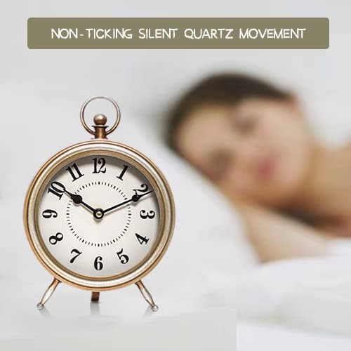 Antique Gold Finish Mantel Clock – Vintage Gold Table Clock on Stand, Decorative Desk and Shelf Clock, Rustic Mantel Clock Non-Ticking 10.3 * 7.3 inch
