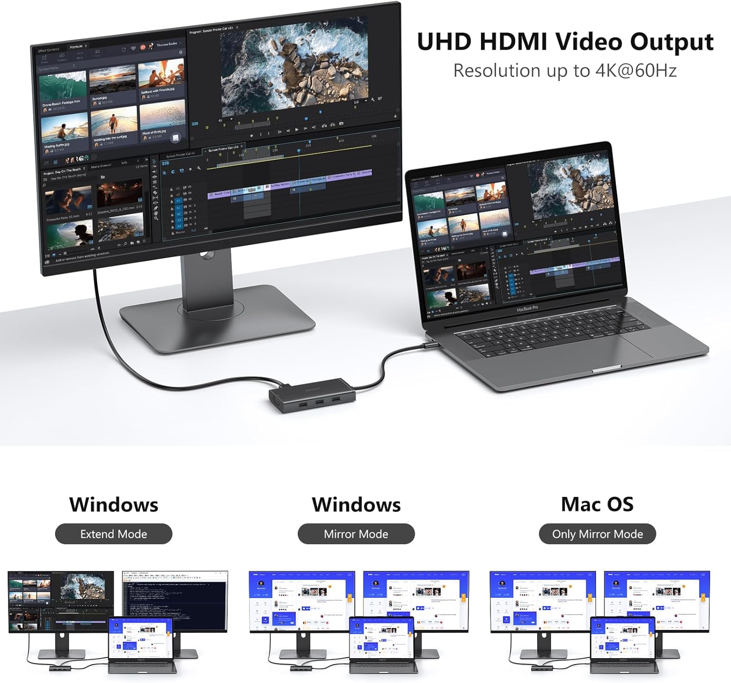 - Compatible Devices : Laptop with USB Type C port (thunderbolt 3/4 or supports video output DP Alt Mode)