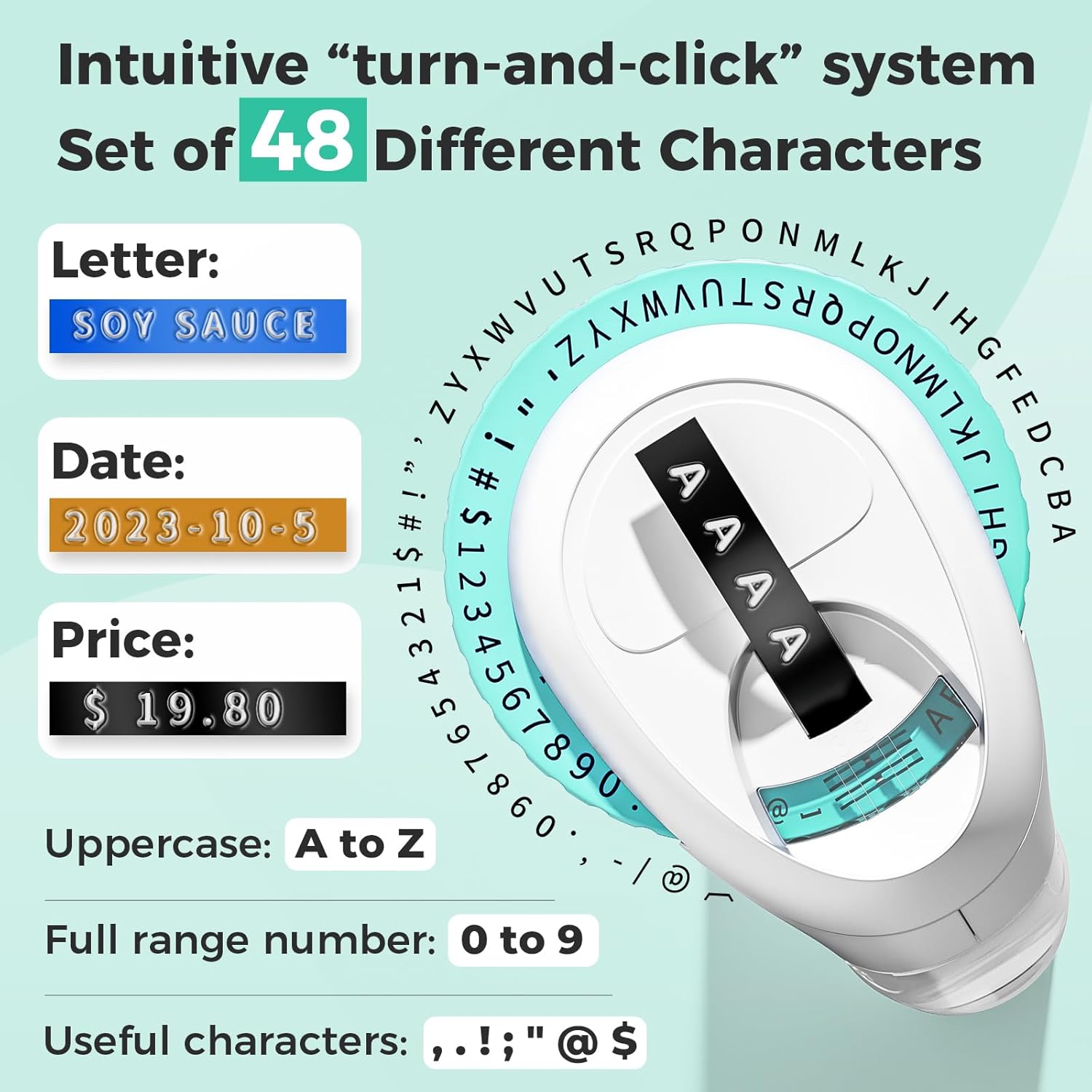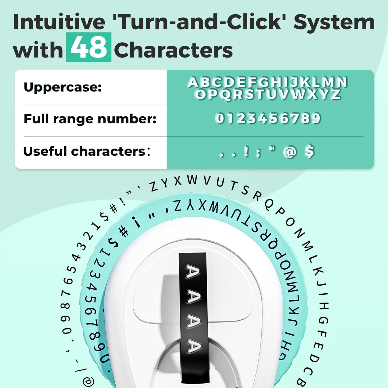 - Simple Label Maker: The Portable Embossing Label Maker with a turn-and-click system simplifies the labeling process, offering 48 useful characters. English letters "A TO Z", numbers : "0 to 9 " , and common symbols " - ! @. , !‘“ $ # ". Sufficient to meet your use needs