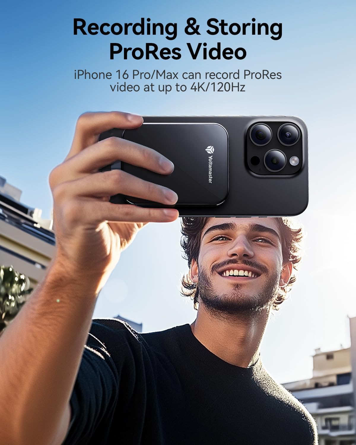 - ăSupports 4K ProRes Video RecordingăMagnetic external solid state drive supports 4K ProRes video recording on iPhone 15/16 Pro/Max. It enables real-time recording and storage without needing a secondary transfer, allowing you to capture beautiful moments in your life at any time.