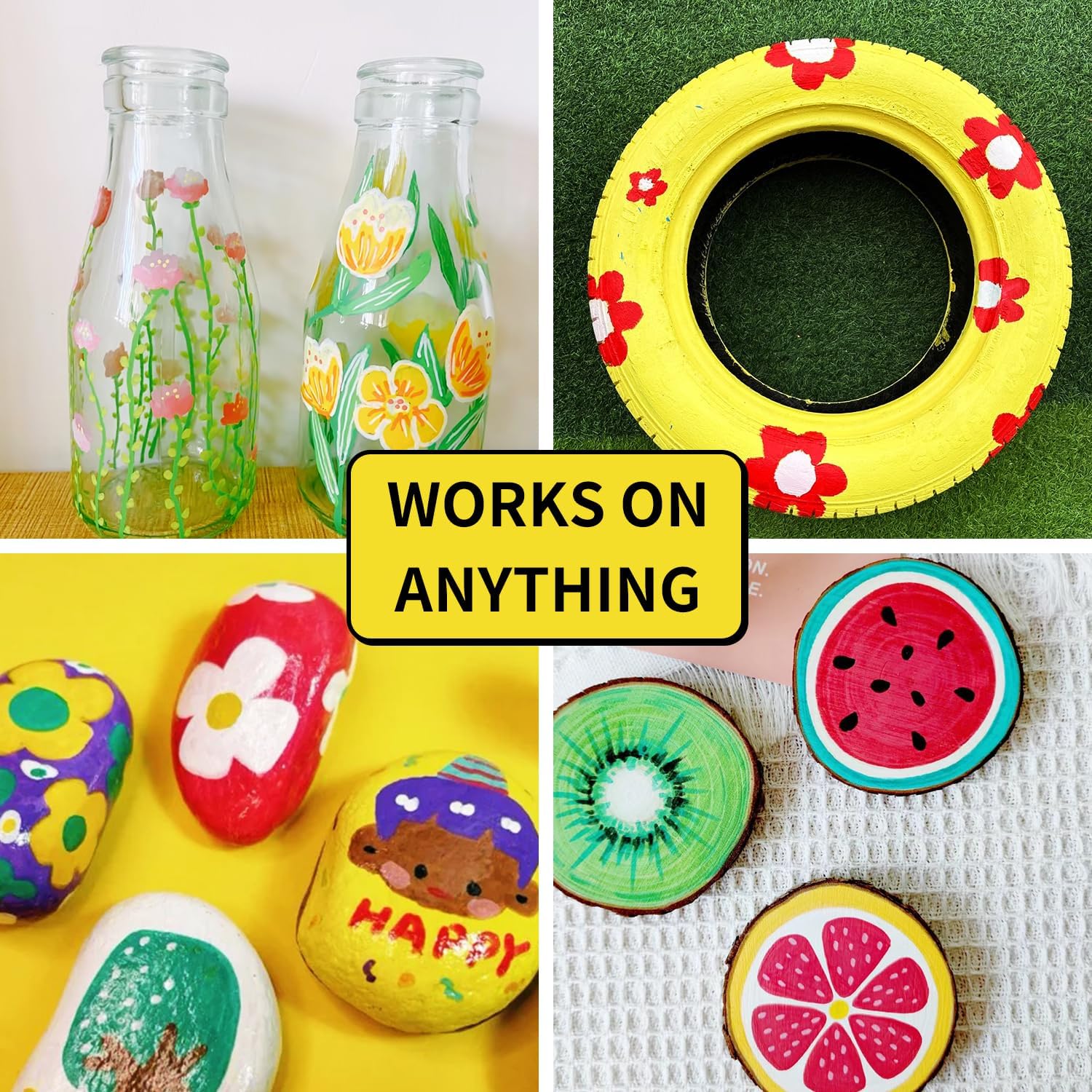 - Extensive Use: Paint pens mark steel and mark objects such as tires, bolts, metal pipes, bumper panels and more. Not just metal, Yellow permanent markers can be used on rocks,wood, ceramic, canvas, tires, rubber, glass and plastic surfaces