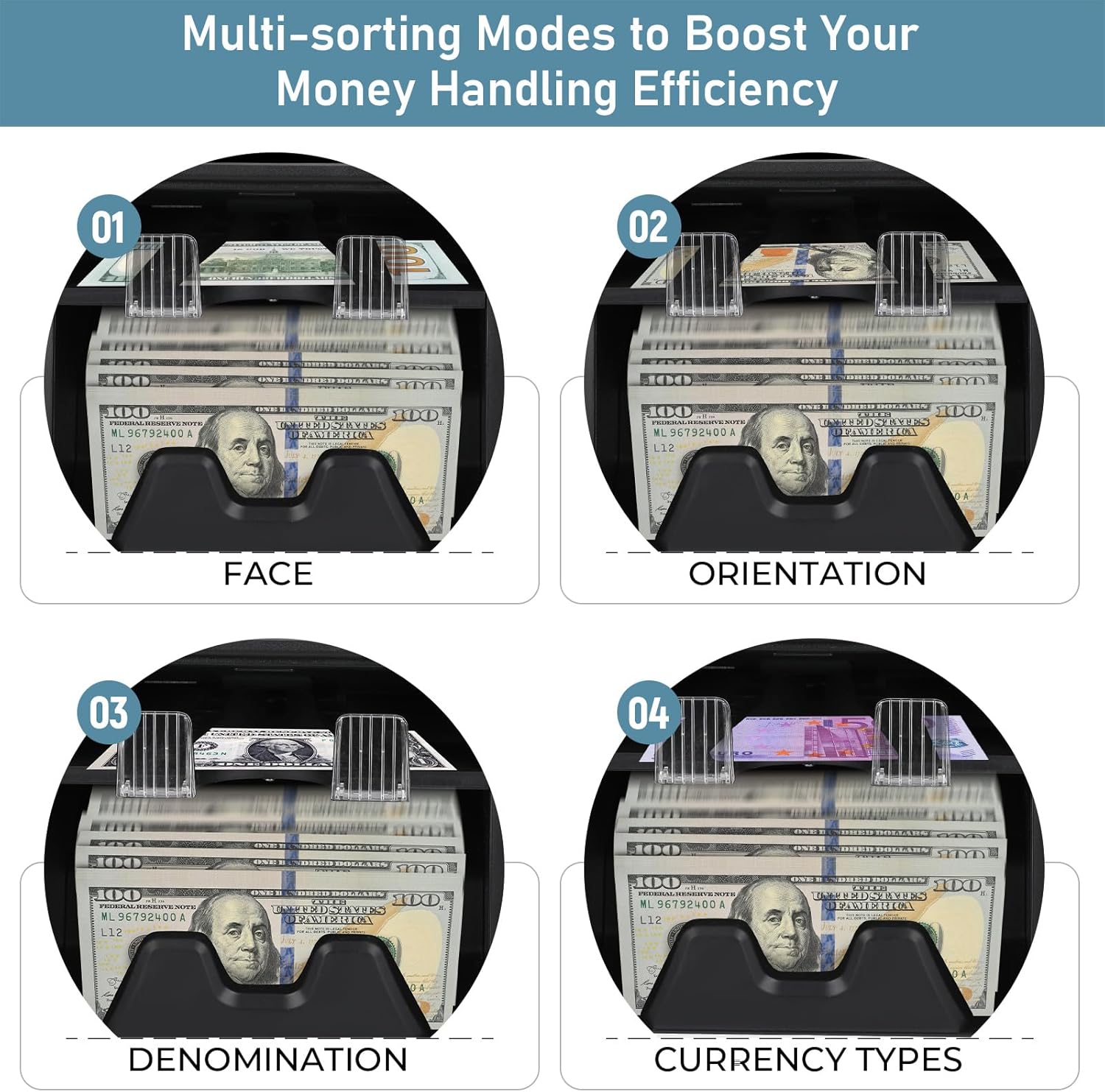 NUCOUN VS-35 Mixed Denomination Money Counter Machine,with Reject Pocket,Support USD/EUR/MXN/CAD Count,Bill Sorter,Counterfeit Detection CIS/UV/MG/IR,4'' Touch Screen,Sort&Print Enabled Cash Counter