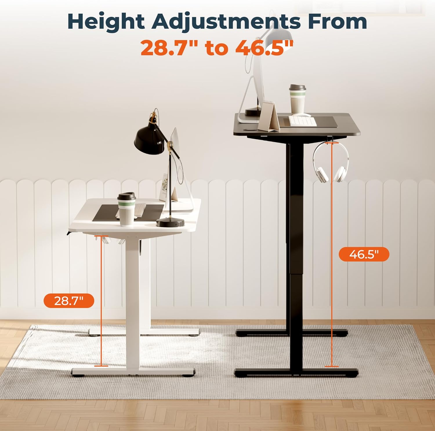 - Versatile Ergonomic Adjustment: Our stand up desk smoothly adjusts from 28.7" to 46.5", allowing for a comfortable transition between sitting and standing. This flexibility is essential for enhancing work productivity, health, and comfort throughout the day.
