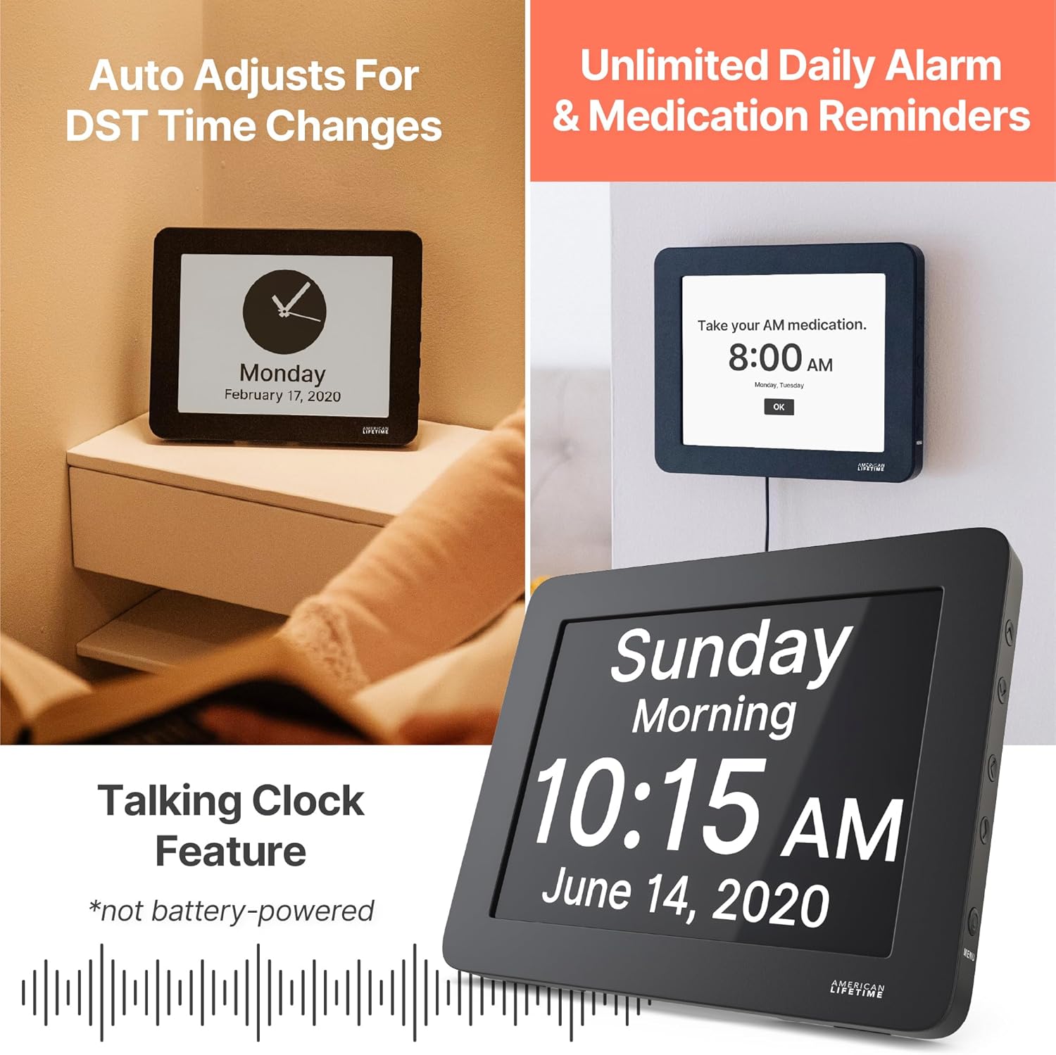 - Perfect for Non-Techy Adults: Simple setup and easy operation make American Lifetime Day Clock perfect for seniors and tech novices. Enjoy automatic daylight saving adjustments for hassle-free use.