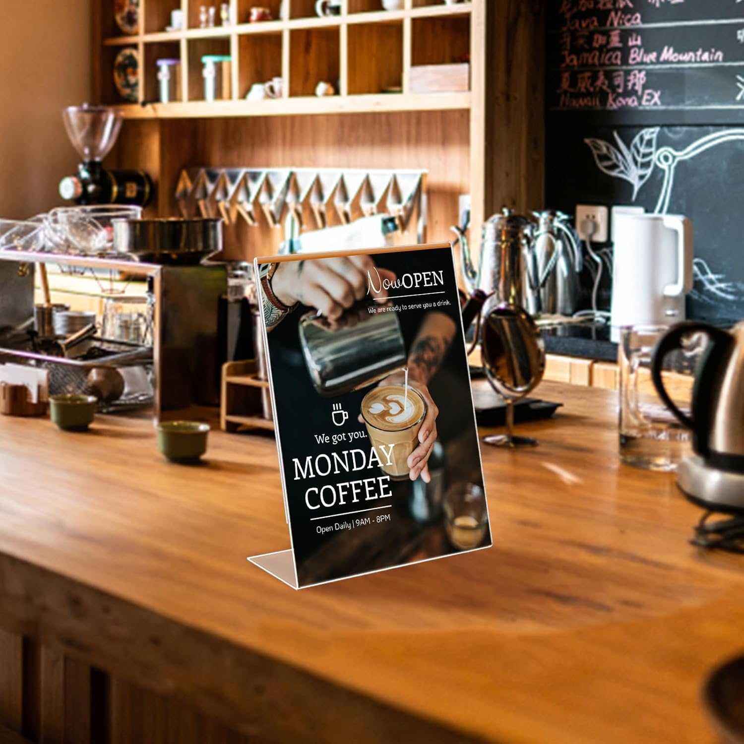 Acrylic Sign Stand Holders - 8.5 x 11 Clear Plastic Table Paper Display Stand, Suit for Displaying Posters, Picture, Flyers, Menu - 10 Pack