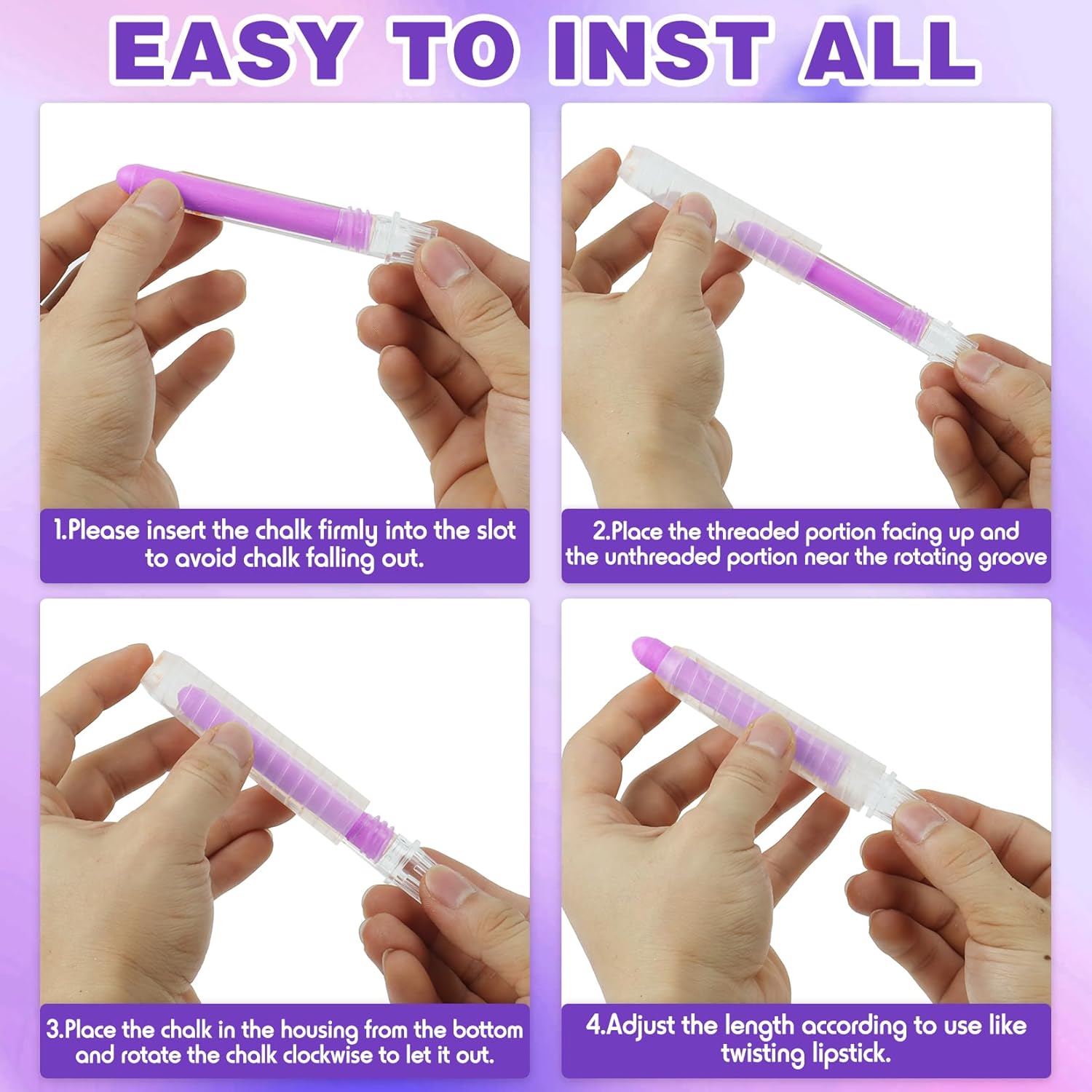 Sidewalk Chalk for Kids - 24 PCS Colored Non-Toxic Twistable Dustless Chalk with Holder, Dust-free Washable Toddler Chalk for Chalkboard Drawing Writing (Plastic Box-Packed)
