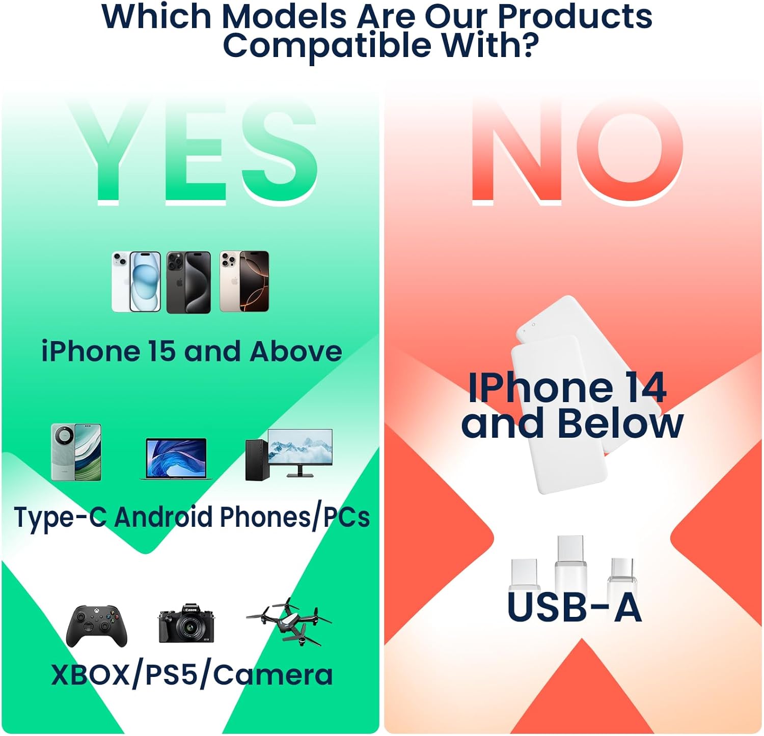 - Compatible Devices : Compatible with iPhone 15/16 Series and other USB Type-C devices