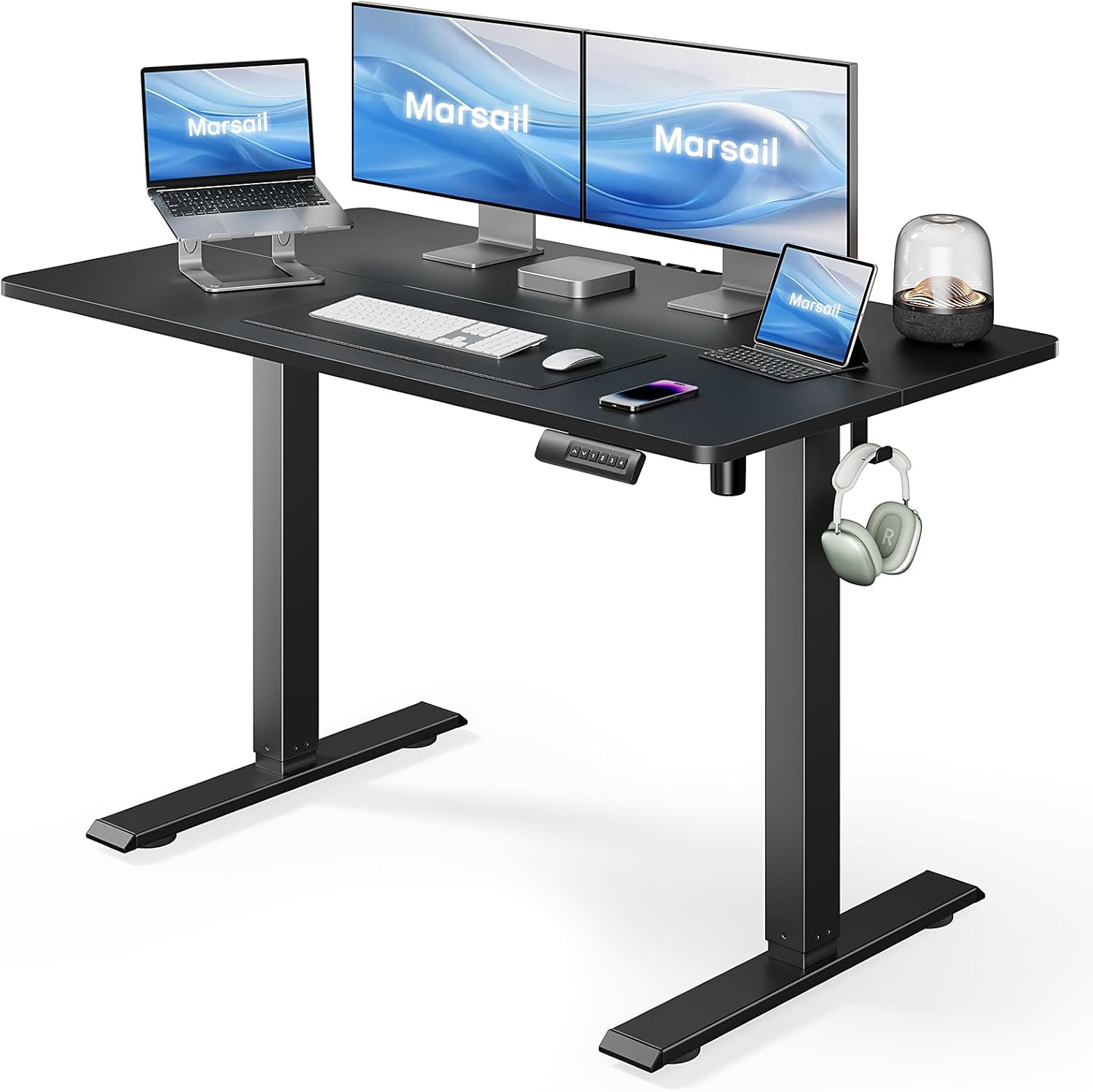 Marsail Standing Desk Adjustable Height Stand up Home Office Desk, 48x24 Inch Electric Standing Computer Desk, with 4 Memory Presets, Headphone Hook, Cable Organizer, Black